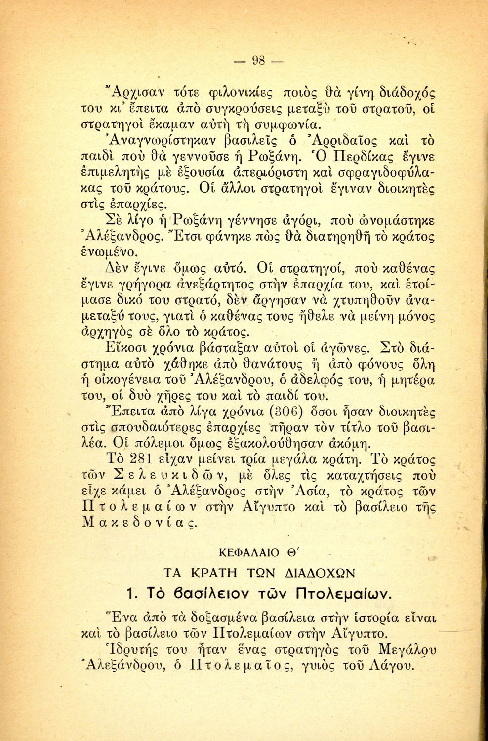 Σχολικό εγχειρίδιο Ιστορίας. Δ' Δημοτικού που καλύπτει την περίοδο από την κάθοδο των Δωριέων ως την κατάληψη της Ελλάδας από τους Ρωμαίους.