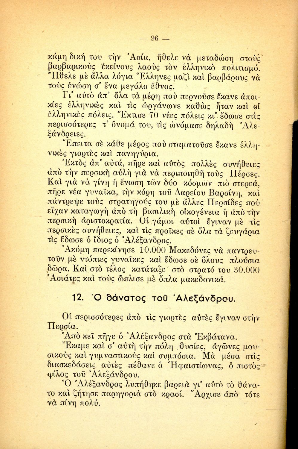 Βαθμίδα εκπαίδευσης: Πρωτοβάθμια Τάξη: Δ' Δημοτικού Μάθημα: Ιστορία Γλώσσα: Δημοτική με στοιχεία καθαρεύουσας Παρουσίαση περιεχομένου: Σχολικό εγχειρίδιο Ιστορίας. Δ' Δημοτικού που καλύπτει την περίοδο από την κάθοδο των Δωριέων ως την κατάληψη της Ελλάδας από τους Ρωμαίους. |