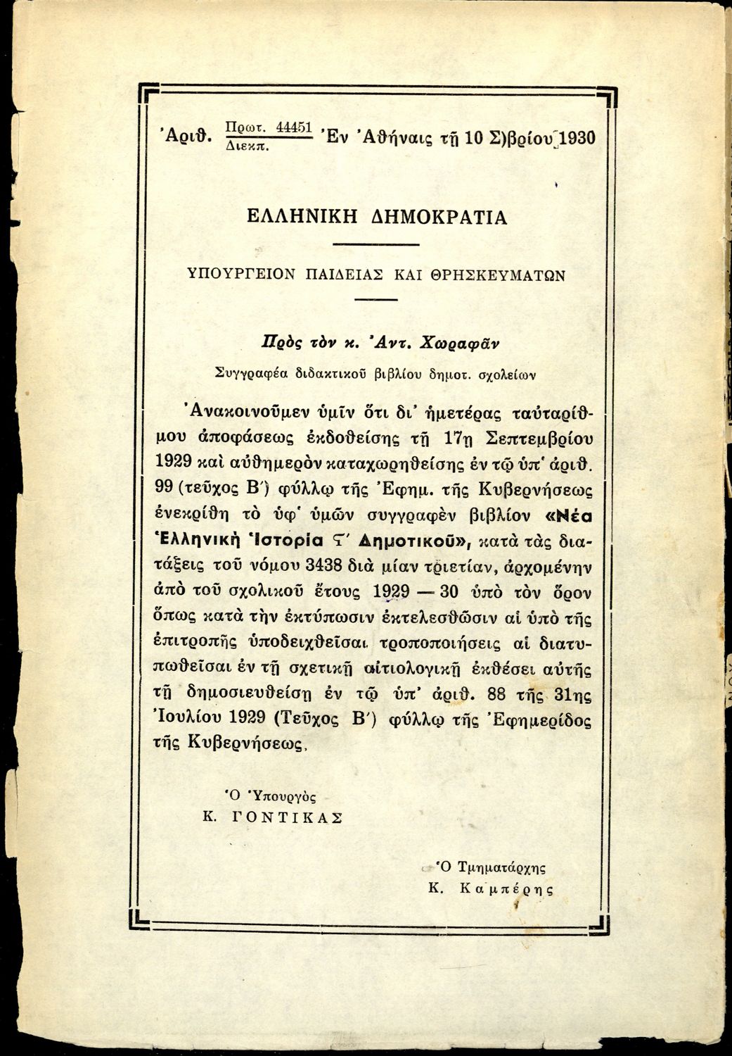 Υπουργική απόφαση / Σύμβαση: 44451/ 10-9-1930