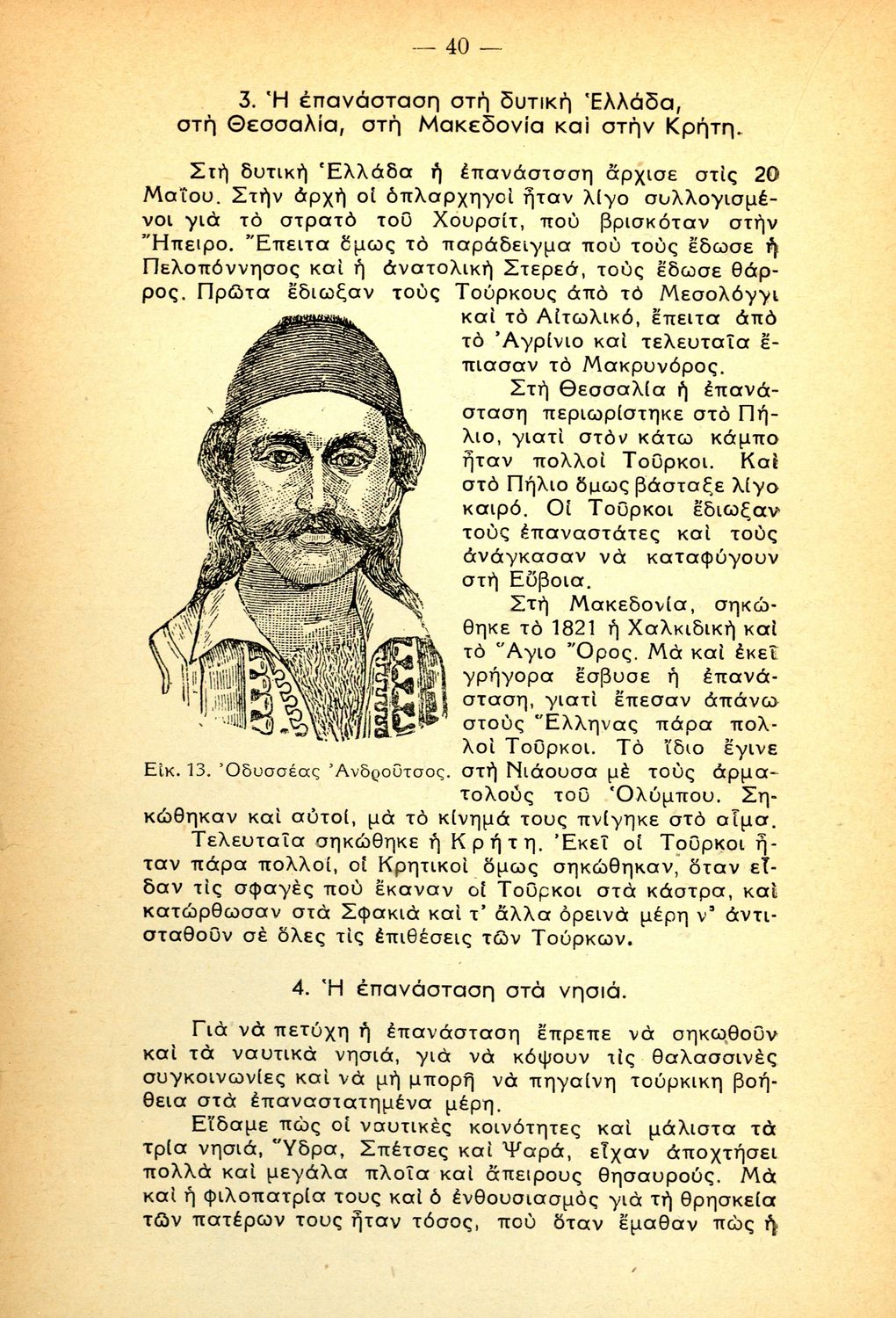 Βαθμίδα εκπαίδευσης: Πρωτοβάθμια Τάξη: ΣΤ' Δημοτικού Μάθημα: Ιστορία Γλώσσα: Δημοτική με στοιχεία καθαρεύουσας Παρουσίαση περιεχομένου: Σχολικό εγχειρίδιο για την ΣΤ΄ Δημοτικού για το μάθημα της Ιστορίας. Το εγχειρίδιο αποτελείται από 10 κεφάλαια. Τα θέματα που αναπτύσσονται εστιάζουν στην οργάνωση του νέου ελληνισμού, στην προετοιμασία και τον αγώνα της Ελληνικής Επανάστασης του 1821, στην βασιλεία του Όθωνα και μετέπειτα του Γεωργίου, το κίνημα στο Γουδή και καταλήγει με τους Βαλκανικούς πολέμους. |