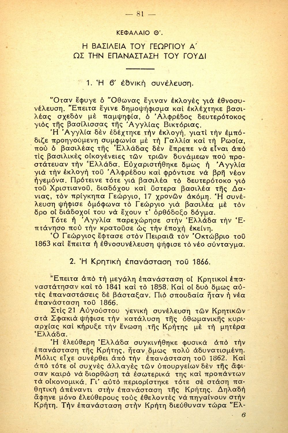 520 ## _aΣχολικό εγχειρίδιο για την ΣΤ΄ Δημοτικού για το μάθημα της Ιστορίας. Το εγχειρίδιο αποτελείται από 10 κεφάλαια. Τα θέματα που αναπτύσσονται εστιάζουν στην οργάνωση του νέου ελληνισμού, στην προετοιμασία και τον αγώνα της Ελληνικής Επανάστασης του 1821, στην βασιλεία του Όθωνα και μετέπειτα του Γεωργίου, το κίνημα στο Γουδή και καταλήγει με τους Βαλκανικούς πολέμους.