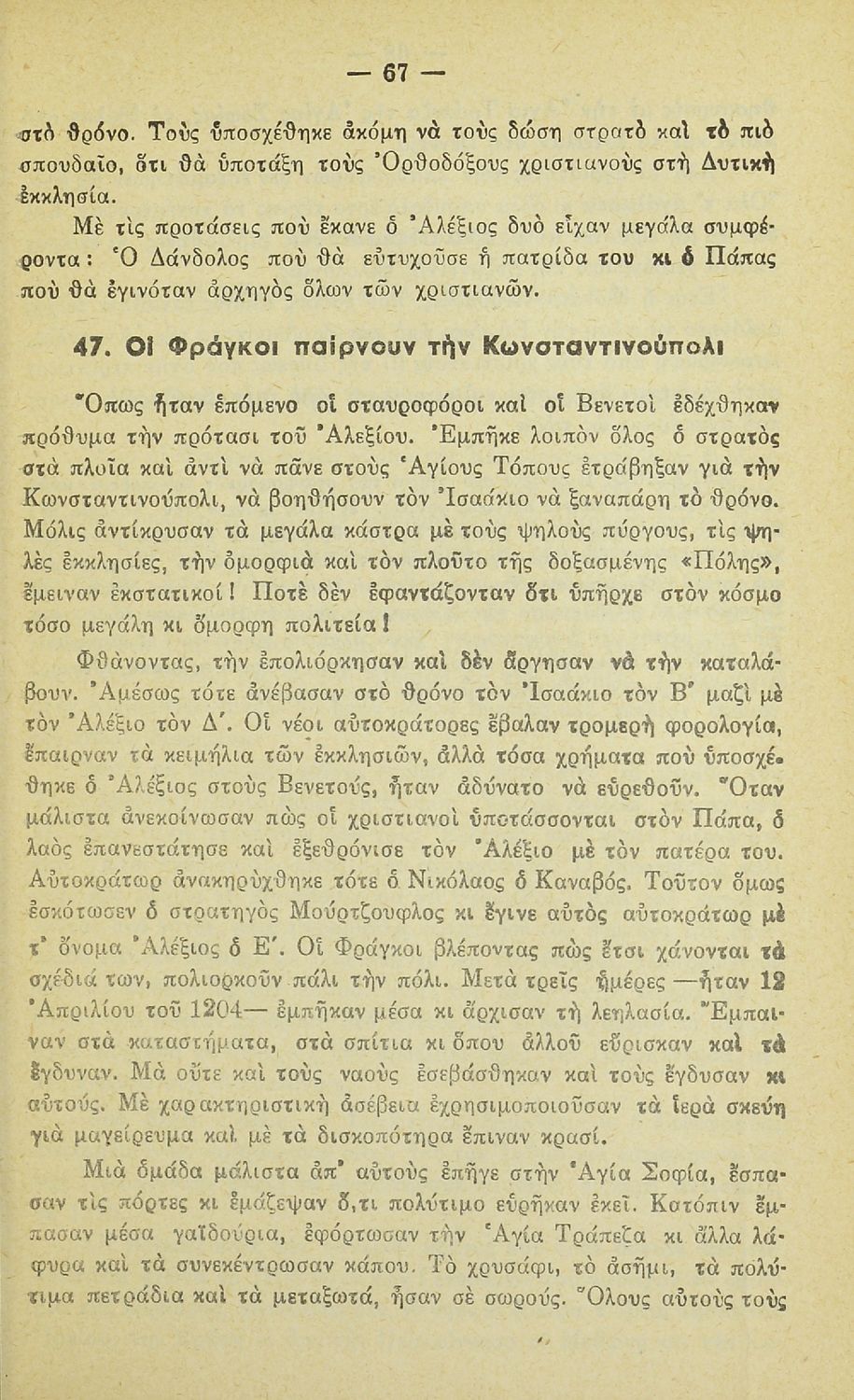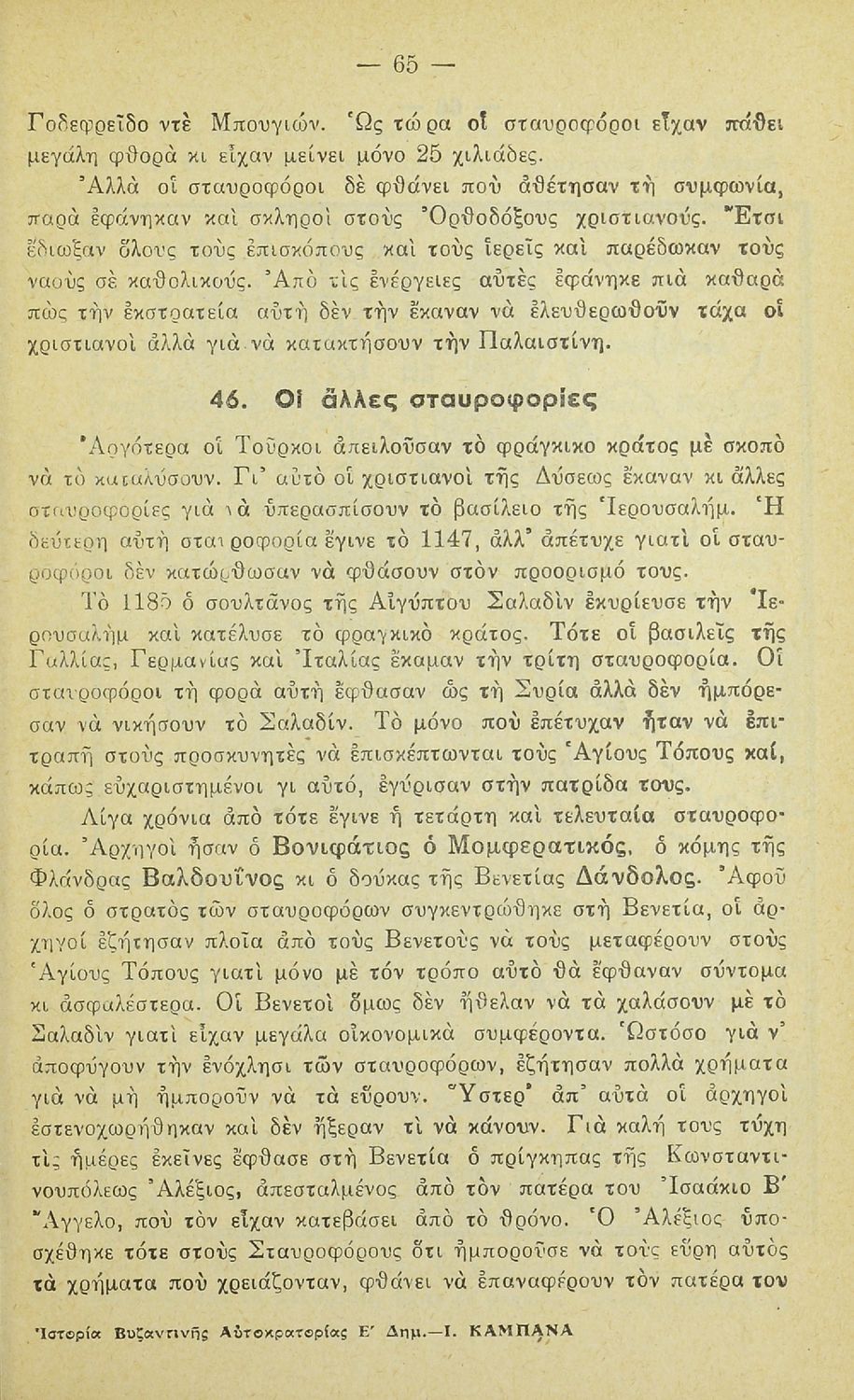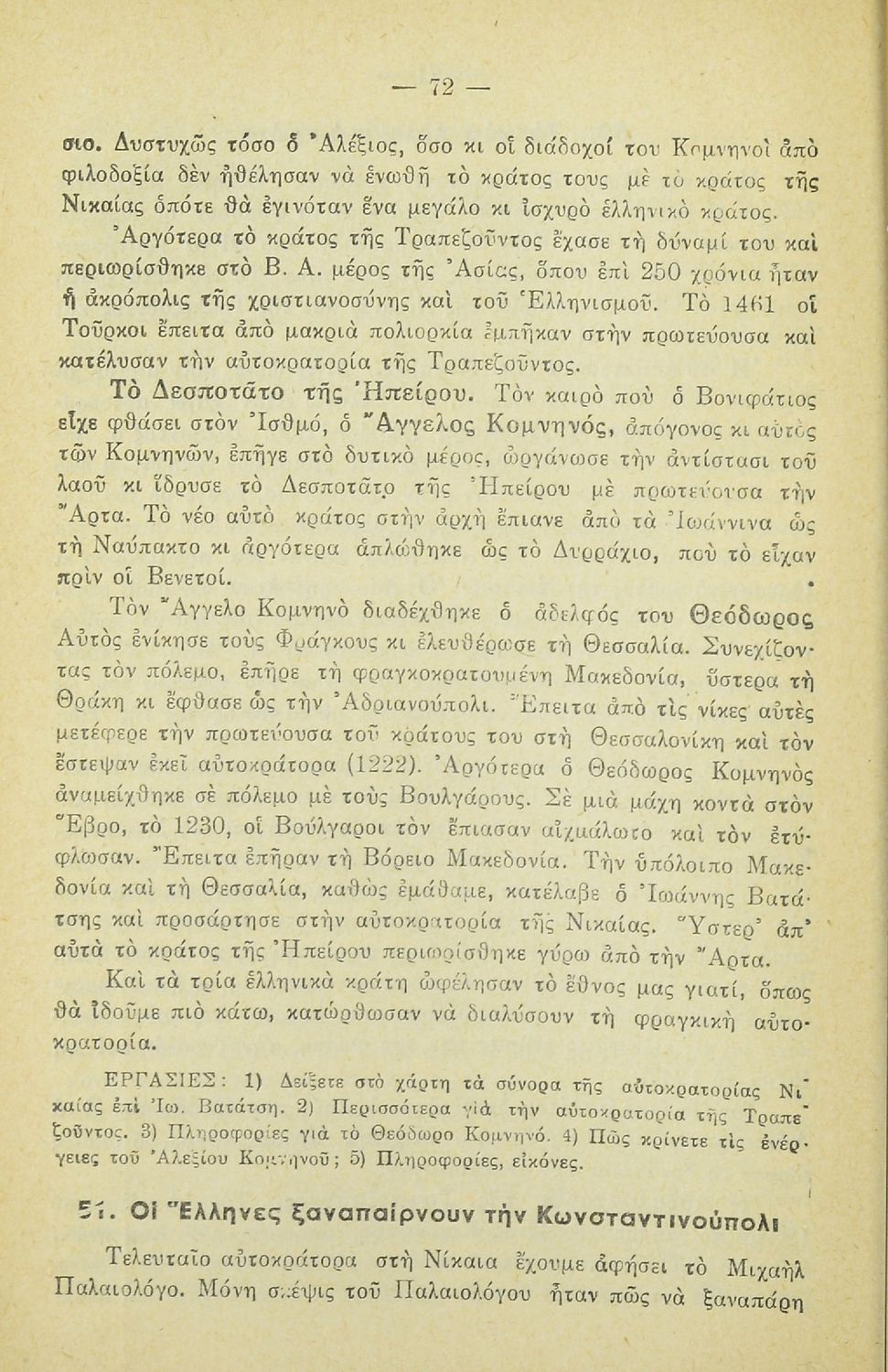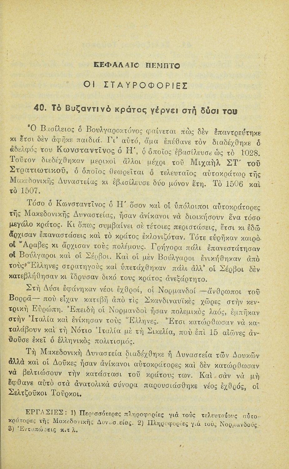Σχολικό εγχειρίδιο για το μάθημα της Ιστορίας στους μαθητές του Δημοτικού. Αναφέρεται στα χρόνια της Βυζαντινής Αυτοκρατορίας μέχρι και την άλωση της Πόλης. Το τελευταίο κεφάλαιο αναφέρεται στα επιτεύγματα της
