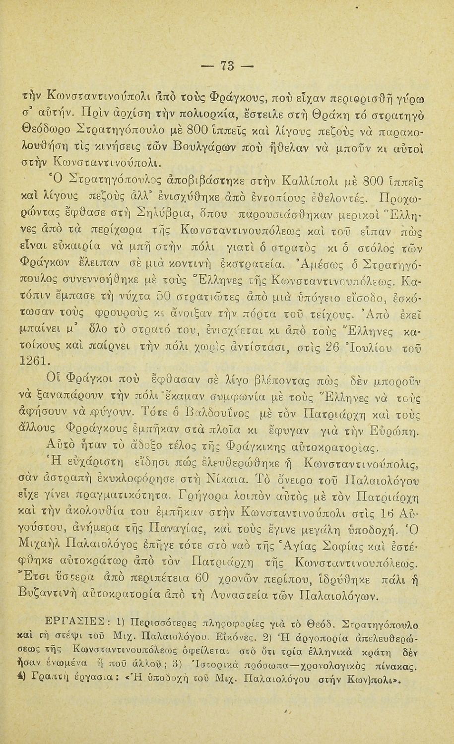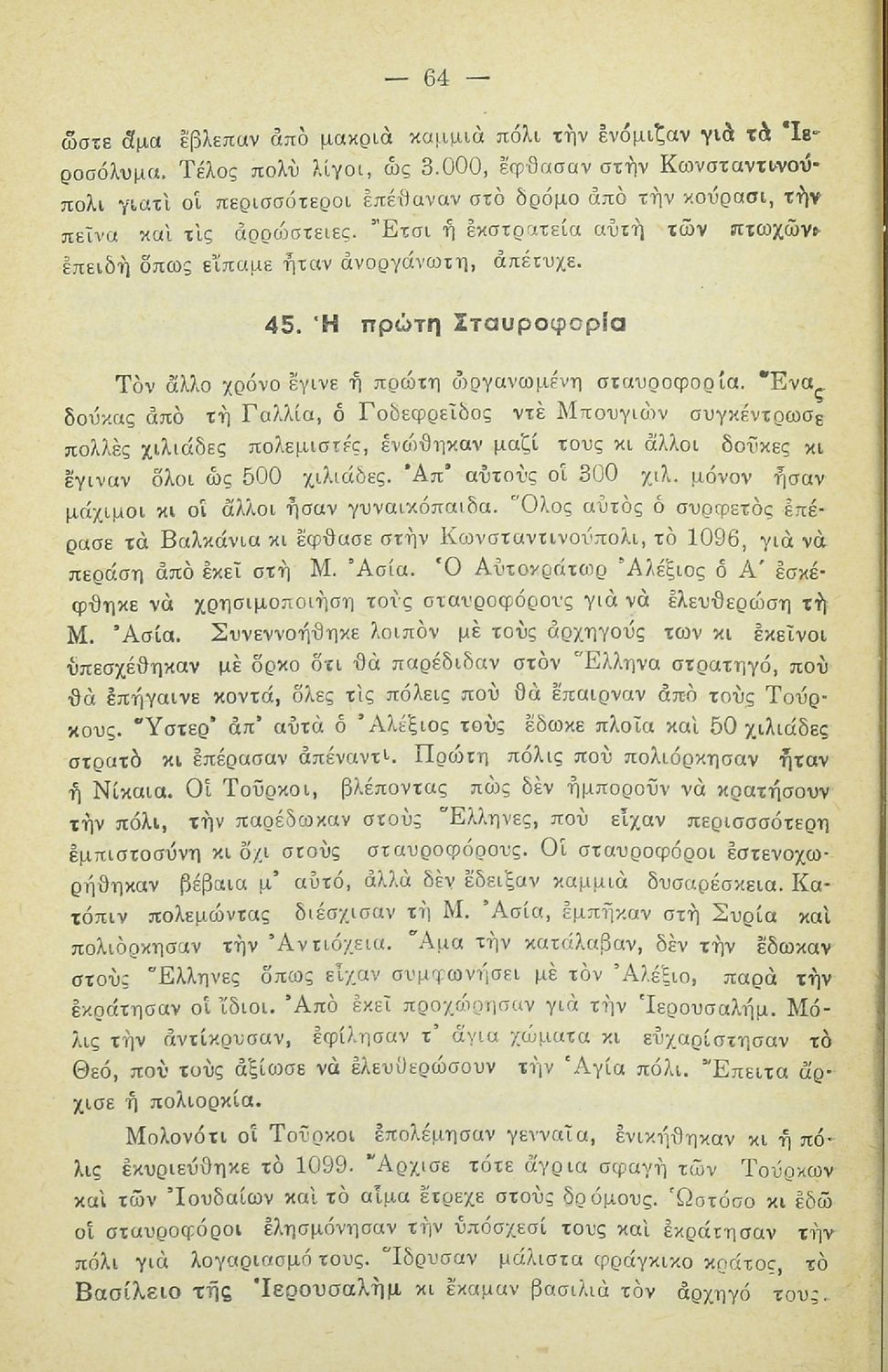 Μαθητικό βοήθημα Ιστορίας Δ΄ Δημοτικού που καλύπτει την περίοδο της Ρωμαϊκής και Βυζαντινής Αυτοκρατορίας μέχρι και την άλωση της Κωνσταντινούπολης. Ο συγγραφέας ήταν επιθεωρητής Δημοτικών Σχολείων.