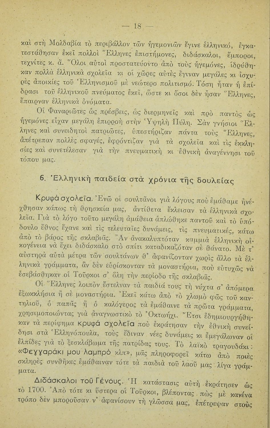 Βαθμίδα εκπαίδευσης: Πρωτοβάθμια Τάξη: ΣΤ' Δημοτικού Μάθημα: Ιστορία Γλώσσα: Δημοτική με στοιχεία καθαρεύουσας Παρουσίαση περιεχομένου: Μαθητικό βοήθημα Ιστορίας ΣΤ΄ Δημοτικού που περιλαμβάνει την ιστορία της νεώτερης Ελλάδας από την περίοδο των Φαναριωτών μέχρι και την λήξη των Βαλκανικών Πολέμων. |