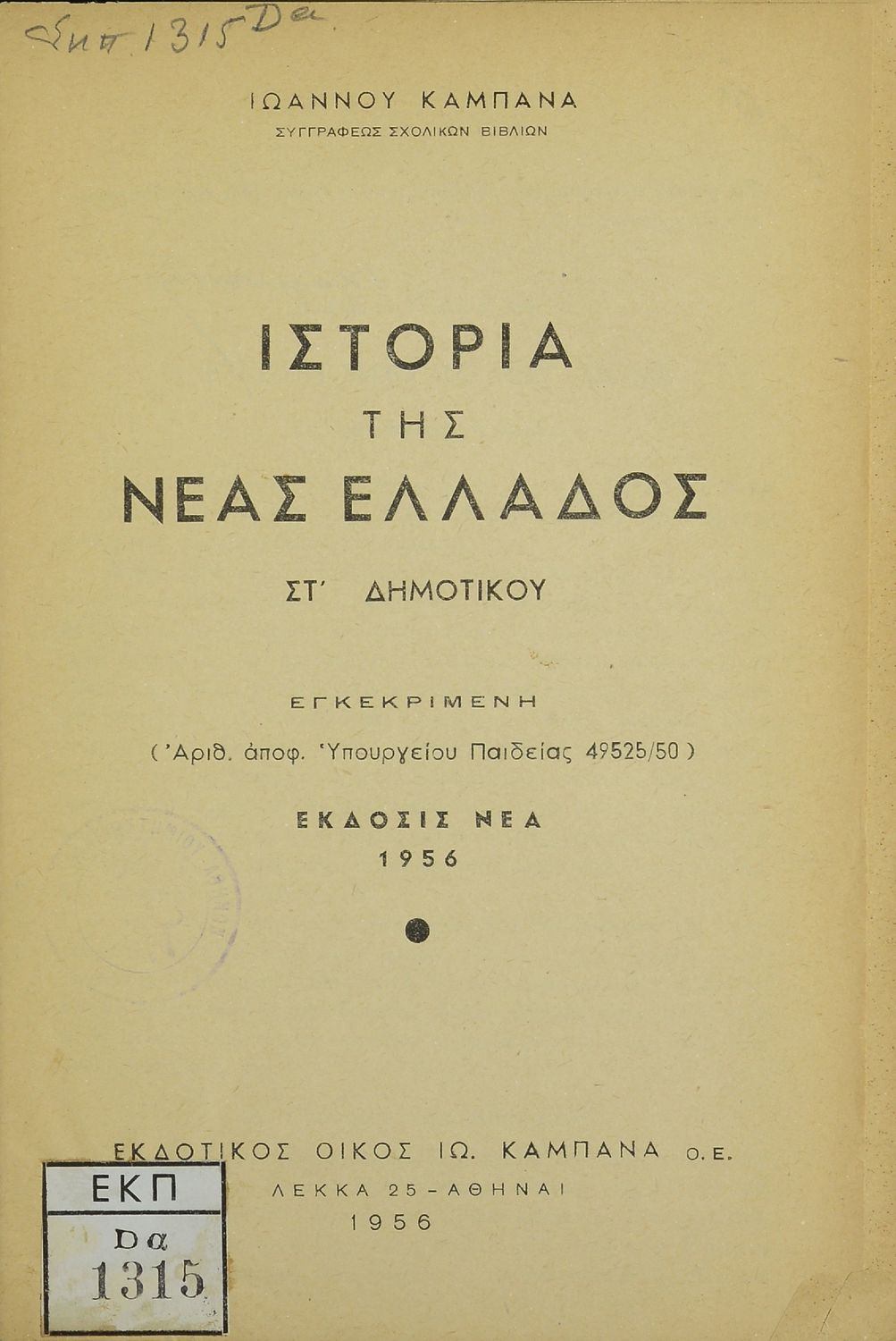 Εκδότης: Ιωάννης Καμπανάς Έτος έκδοσης: 1956 Τόπος έκδοσης: Αθήνα |