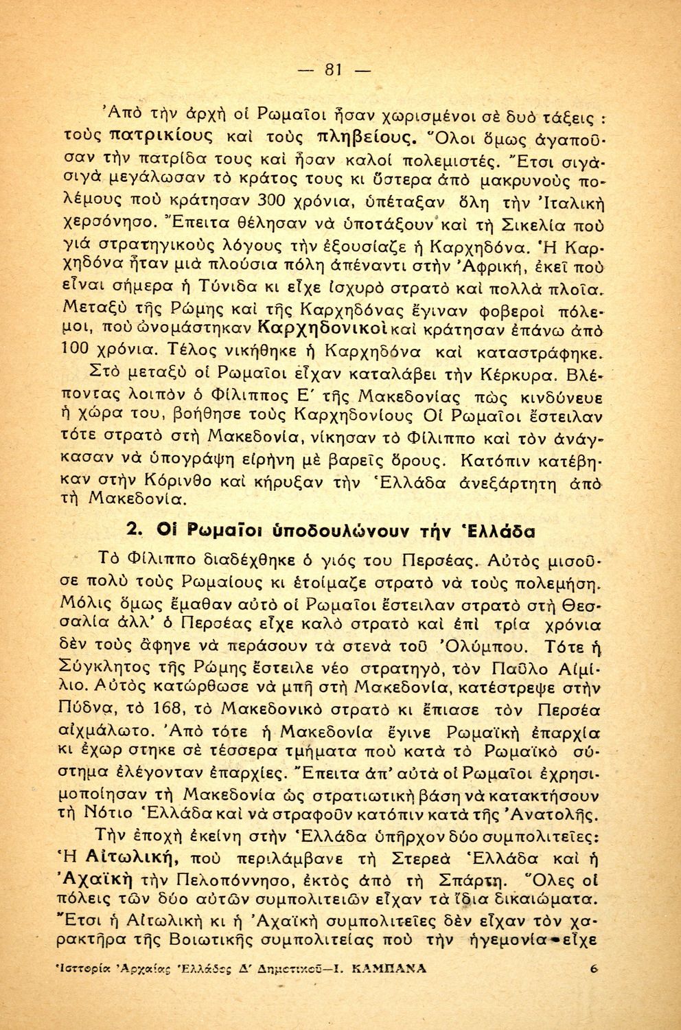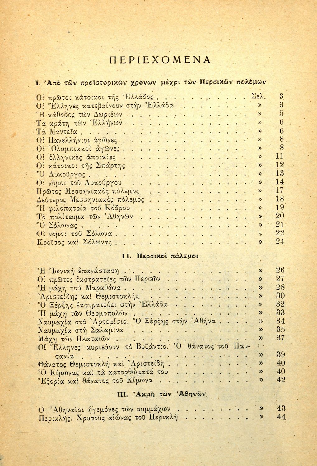 Σχολικό εγχειρίδιο Ιστορίας για τις Γ΄ και Δ΄ Δημοτικού και Παρθεναγωγείου που καλύπτει το διάστημα από τους προϊστορικούς χρόνους ως την κατάληψη της Ελλάδας από τους Ρωμαίους.