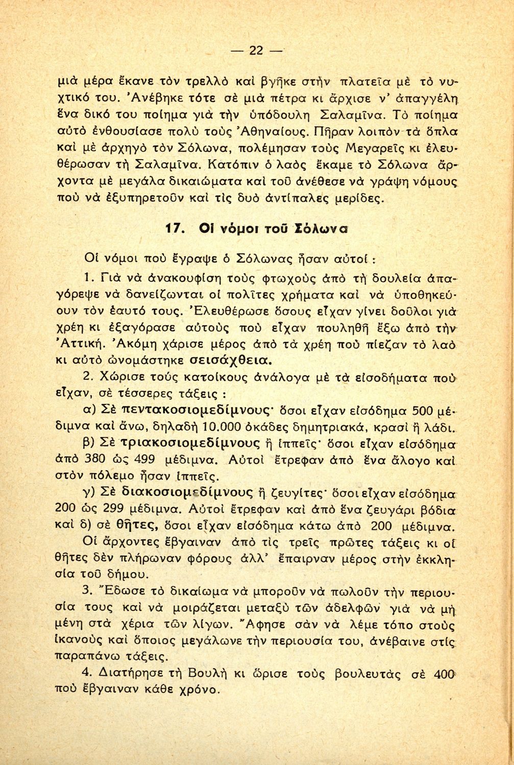 Βαθμίδα εκπαίδευσης: Πρωτοβάθμια Τάξη: Δ' Δημοτικού Μάθημα: Ιστορία Γλώσσα: Δημοτική με στοιχεία καθαρεύουσας Παρουσίαση περιεχομένου: Μαθητικό βοήθημα Ιστορίας Δ΄ Δημοτικού που καλύπτει την περίοδο από τους προϊστορικούς χρόνους ως κατάληψη της Ελλάδας από τους Ρωμαίους. |