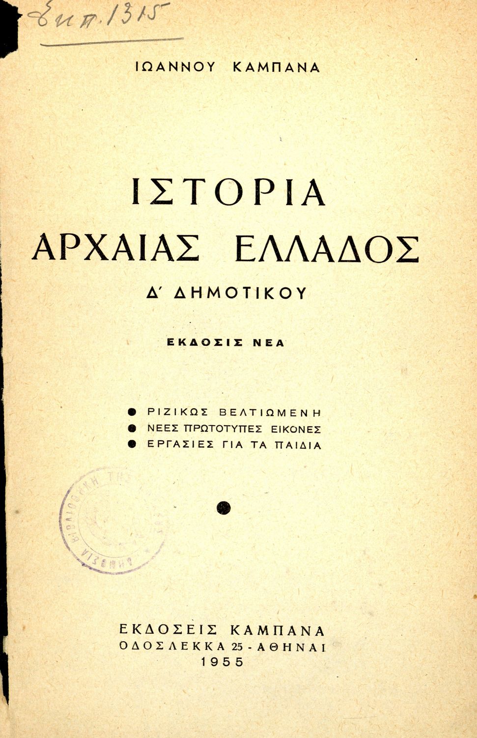 Εκδότης: Ιωάννης Καμπανάς Έτος έκδοσης: 1955 Τόπος έκδοσης: Αθήνα |