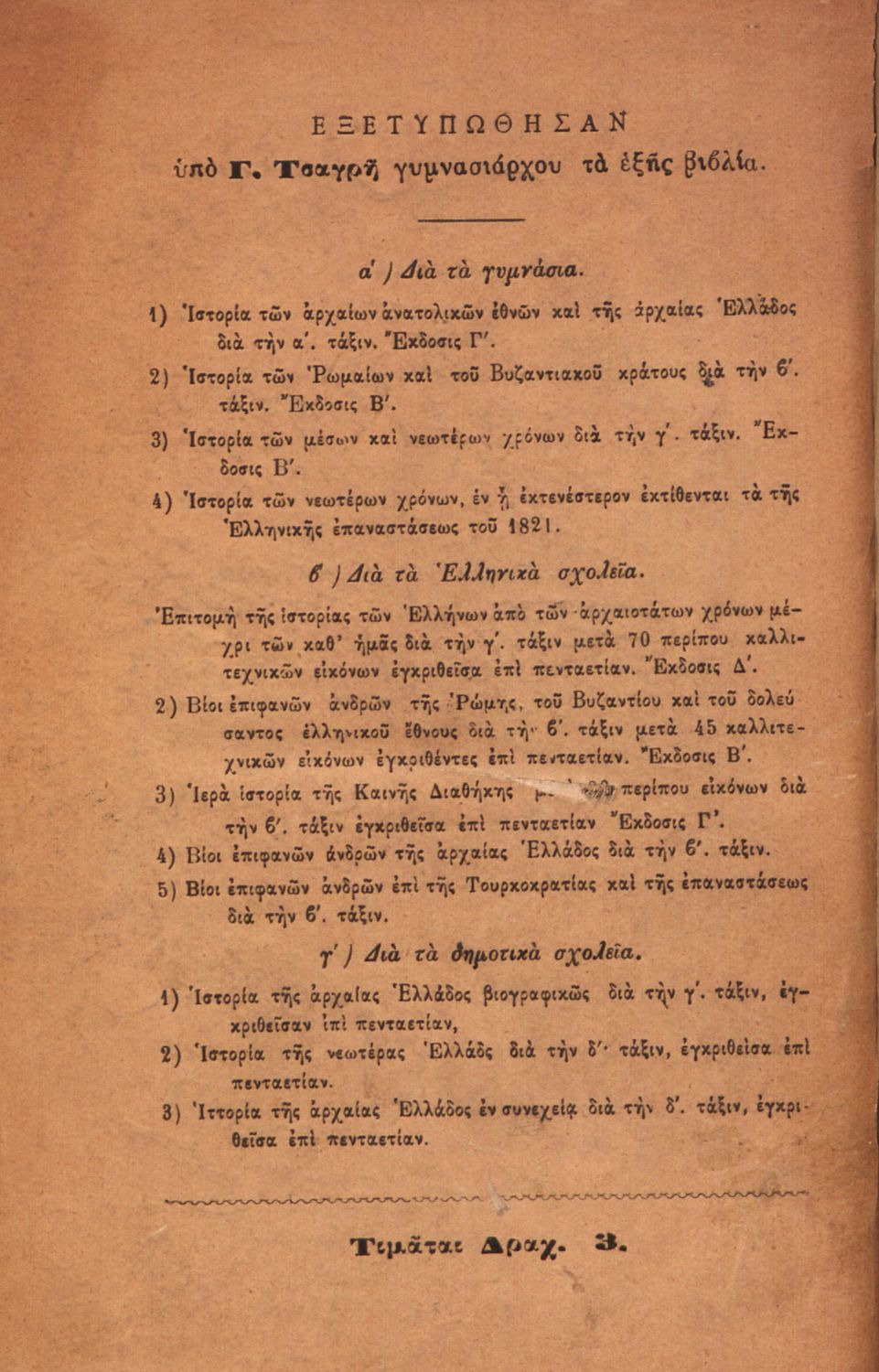 Τίτλος: Ιστορία των αρχαίων ανατολικών εθνών και του ελληνικού έθνους μέχρι της ρωμαϊκής κατακτήσεως προς χρήσιν των μαθητών της Α΄ τάξεως του Γυμνασίου