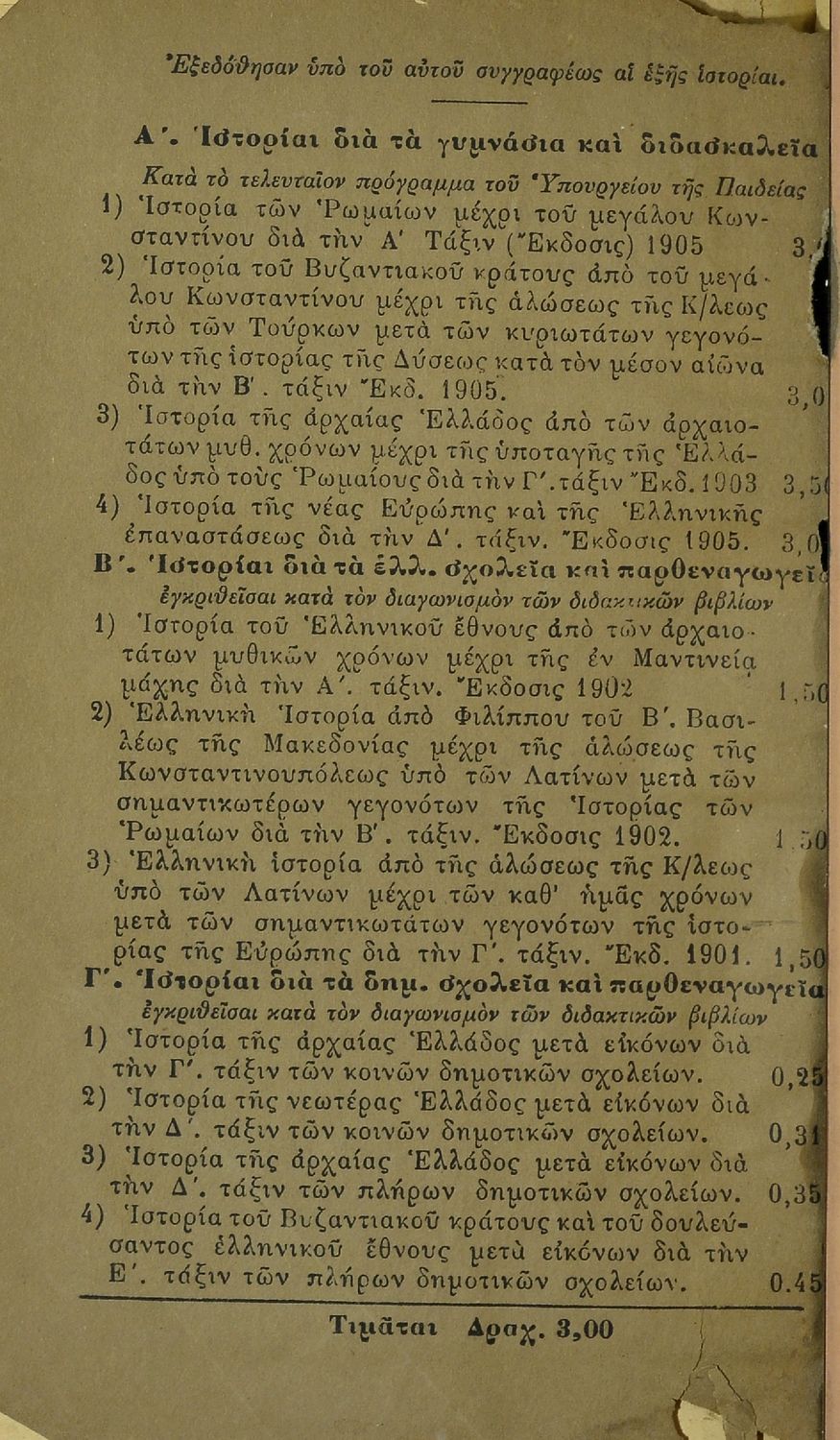 Τίτλος: Ιστορία των Ρωμαίων από της θεμελιώσεως της Ρώμης μέχρι του Μεγάλου Κωνσταντίνου προς χρήσιν των μαθητών της Α΄ τάξεως των Γυμνασίων