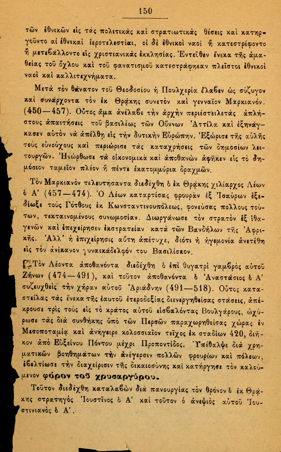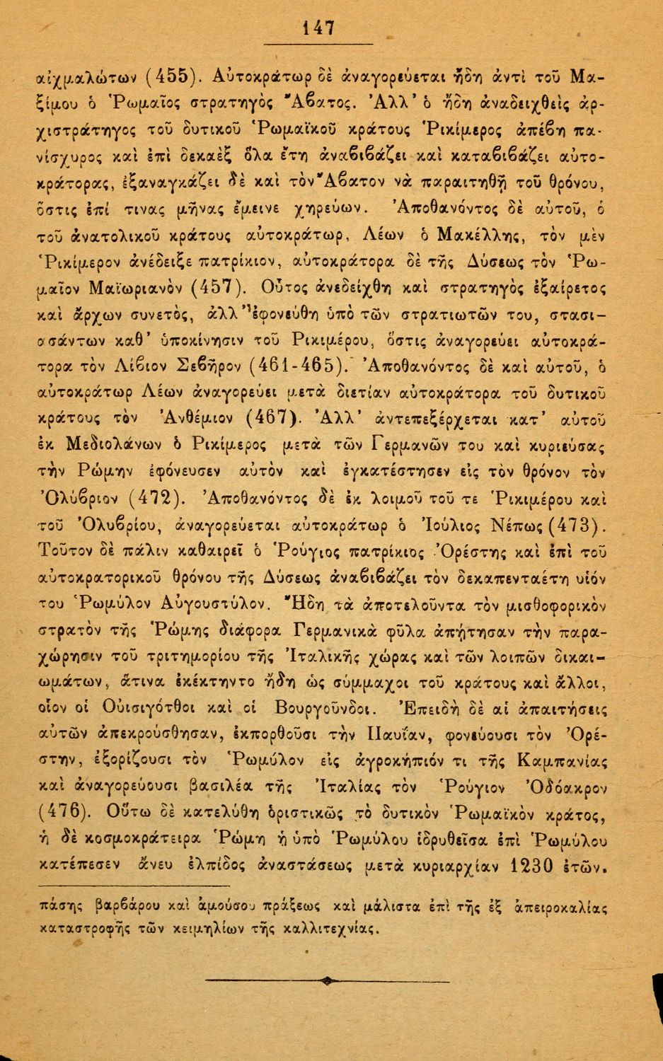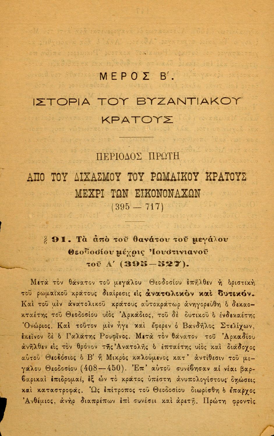 Τίτλος: Ιστορία ελληνική από της υποταγής της Ελλάδος υπό τους Ρωμαίους μέχρι της αλώσεως της Κωνσταντινουπόλεως υπό των Τούρκων (ήτοι από του 146 π. Χ. μέχρι του 1453 μ. Χ.) διά την Ζ΄ τάξιν του Αρσακείου και των Παρθεναγωγείων.