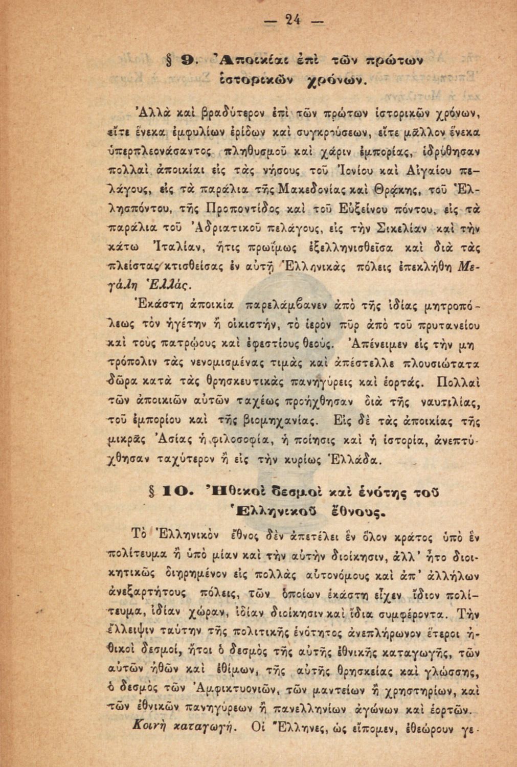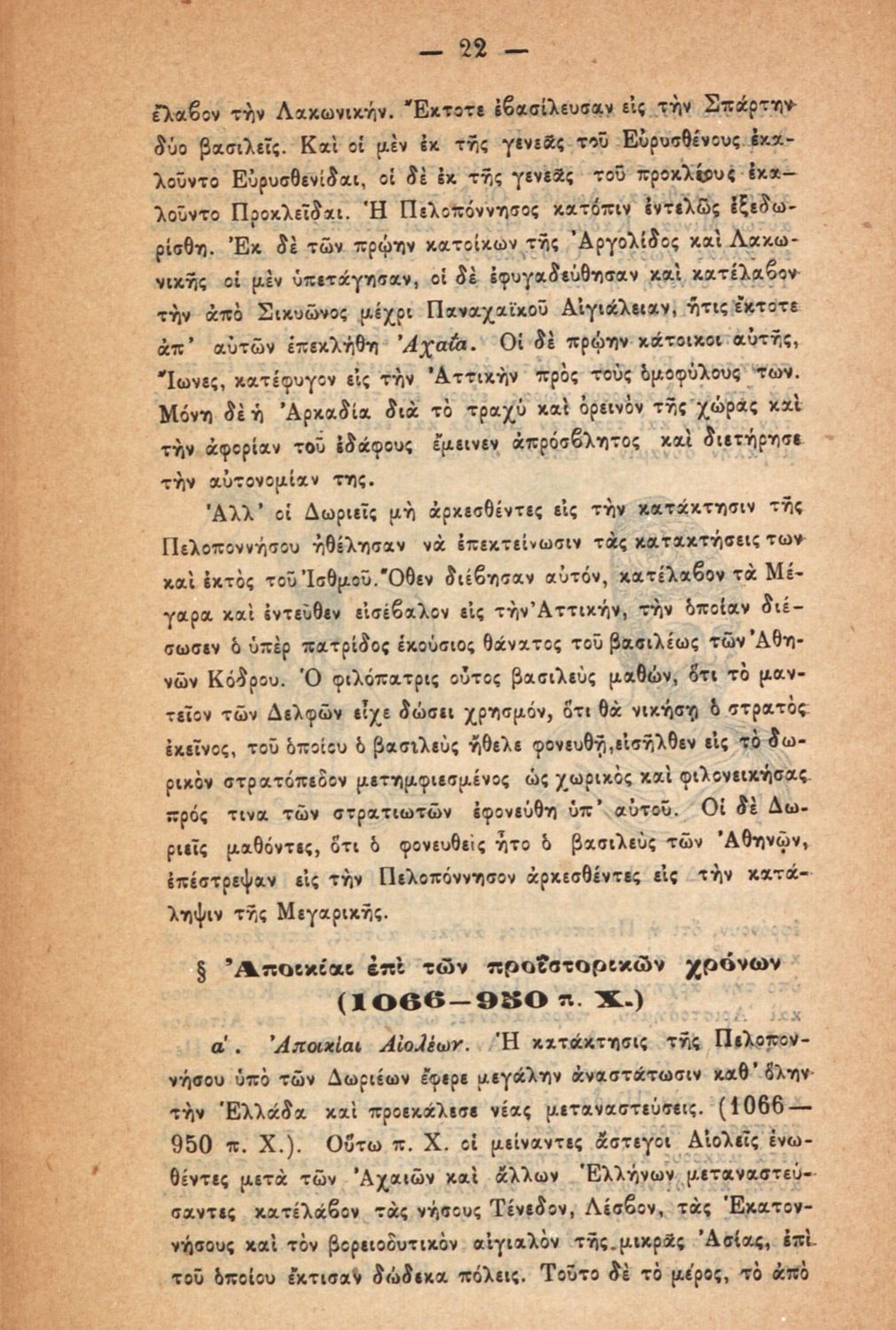 Σχολικό εγχειρίδιο Ιστορίας για τα Ελληνικά Σχολεία και Παρθεναγωγεία που καλύπτει την περίοδο από τους προϊστορικούς χρόνους μέχρι την Ελληνική Επανάσταση και τη βασιλεία του Όθωνα.