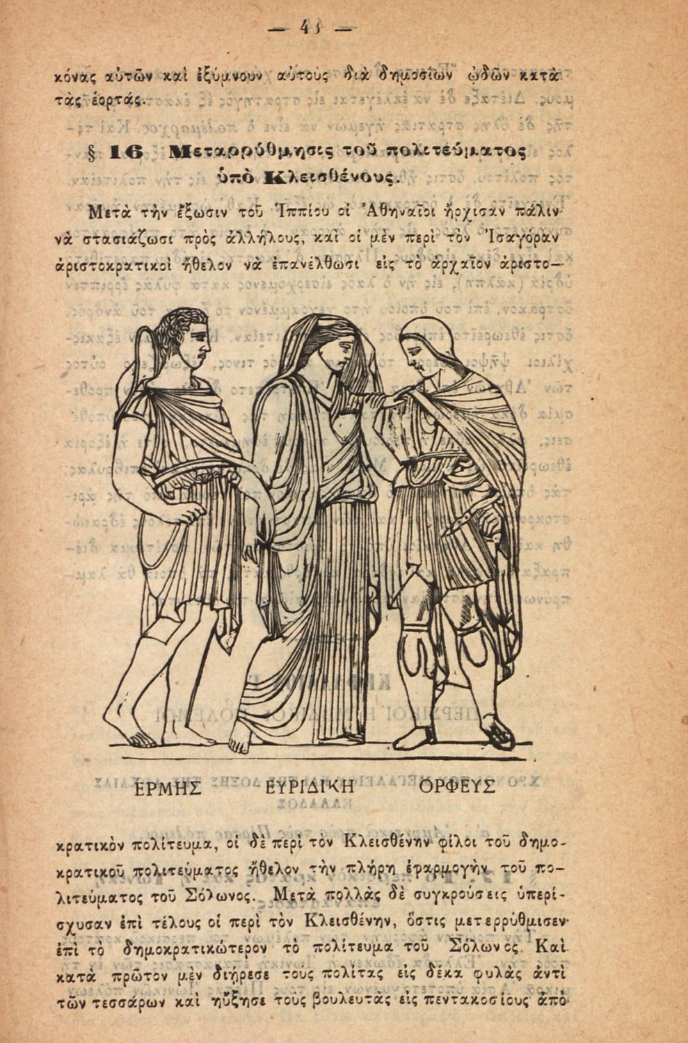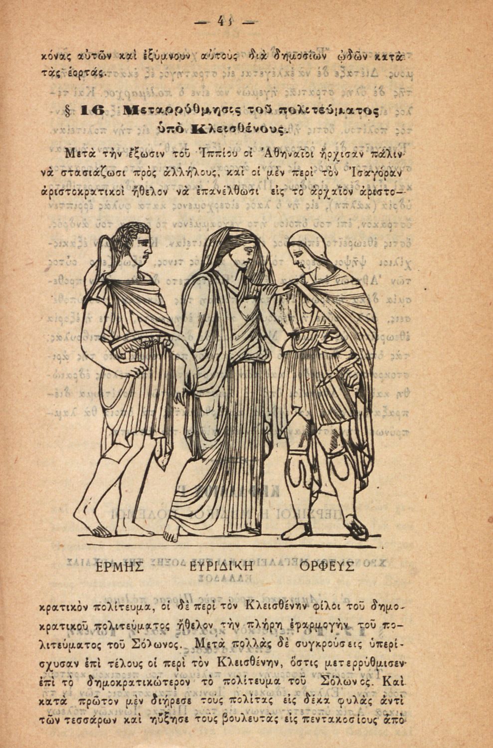 Σχολικό εγχειρίδιο Ιστορίας Α΄ Ελληνικού και Παρθεναγωγείου που καλύπτει την περίοδο από τους μυθικούς και ηρωικούς χρόνους μέχρι την μάχη της Μαντινείας και τον θάνατο του Επαμεινώνδα.