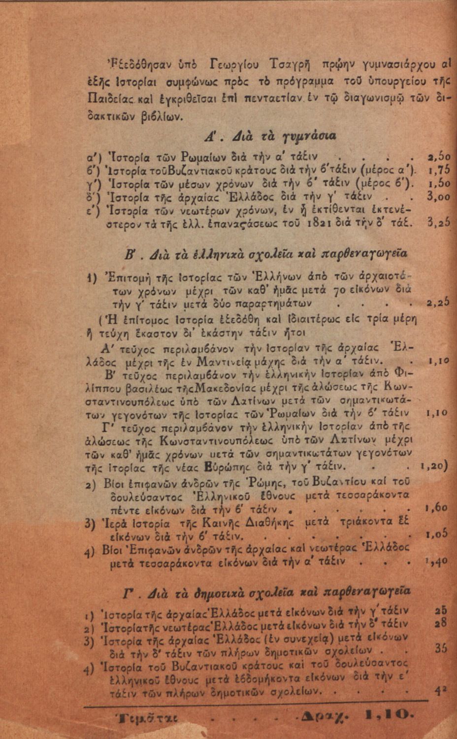 Τίτλος: Επιτομή της ιστορίας των Ελλήνων μετά των σημαντικοτάτων γεγονότων της ιστορίας των Ρωμαίων και των νεωτέρων χρόνων μετά πολλών εικόνων προς χρήσιν των μαθητών των Ελληνικών Σχολείων και Παρθεναγωγείων, μέρος Α΄ ελληνική ιστορία από των αρχαιοτάτων χρόνων μέχρι της εν Μαντινεία μάχης διά την Α΄ τάξιν των Ελλην. Σχολείων και Παρθεναγωγείων