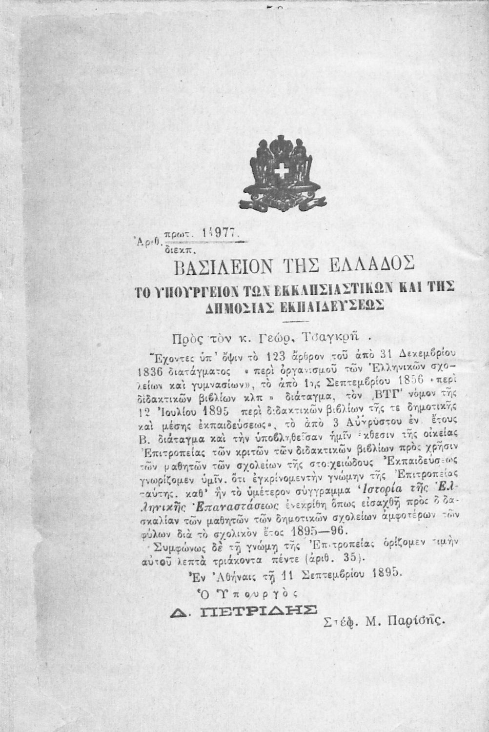 Υπουργική απόφαση / Σύμβαση: 14977/ 11-9-1895