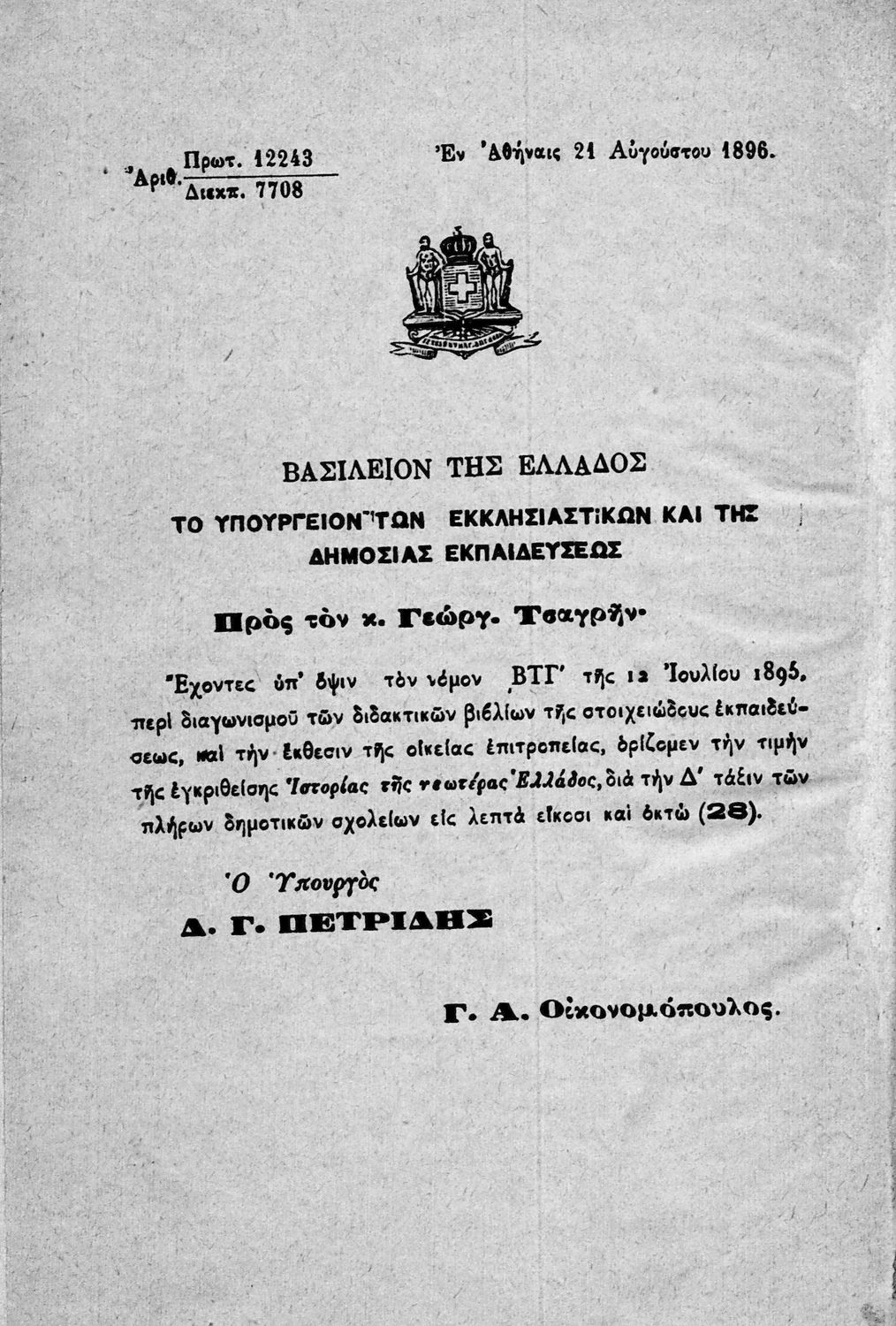 Υπουργική απόφαση / Σύμβαση: 14977/ 11-9-1895