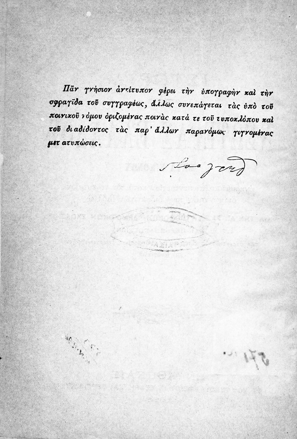 Εντοπισμός πρωτοτύπου: Εθνική Βιβλιοθήκη της Ελλάδος Κωδικός βιβλιοθήκης: 45 |