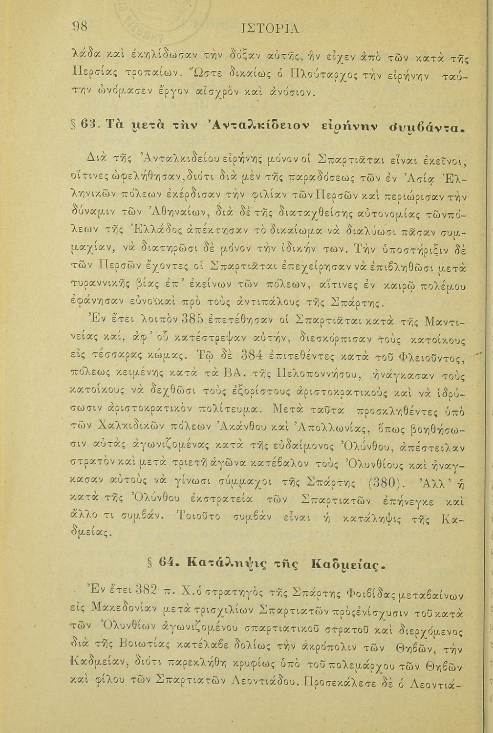 Σχολικό εγχειρίδιο Ιστορίας Α΄ Ελληνικού και Παρθεναγωγείου που καλύπτει την περίοδο από τους μυθικούς και ηρωικούς χρόνους μέχρι την μάχη της Μαντινείας και τον θάνατο του Επαμεινώνδα.