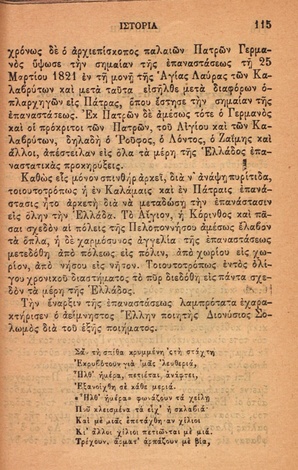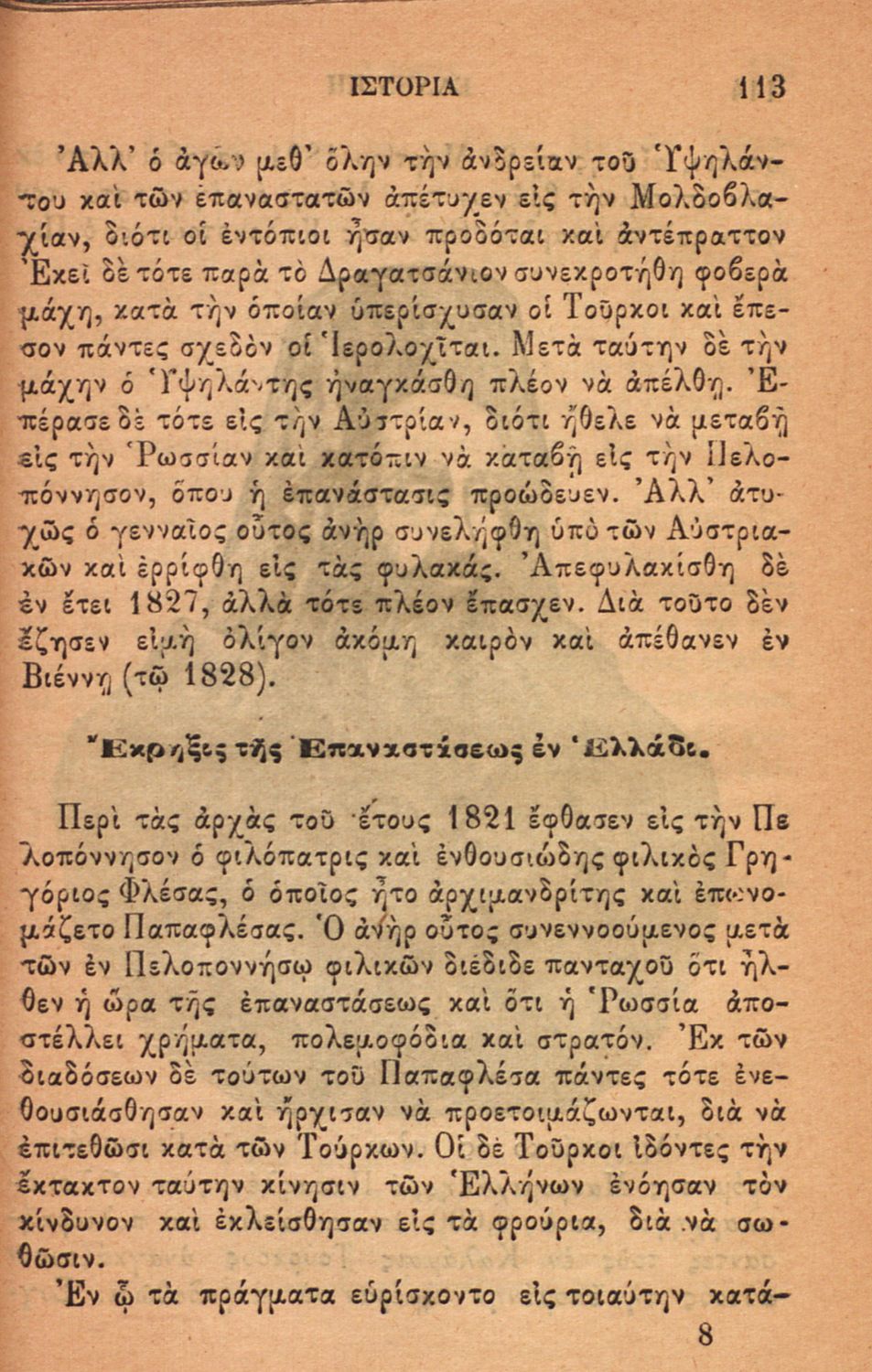 Σχολικό εγχειρίδιο Ιστορίας για τα Ελληνικά Σχολεία και Παρθεναγωγεία που καλύπτει την περίοδο από τους προϊστορικούς χρόνους μέχρι την Ελληνική Επανάσταση και τη βασιλεία του Όθωνα.