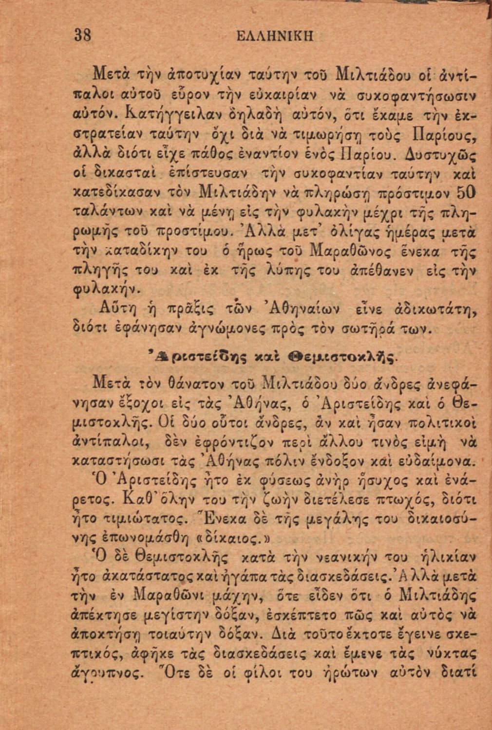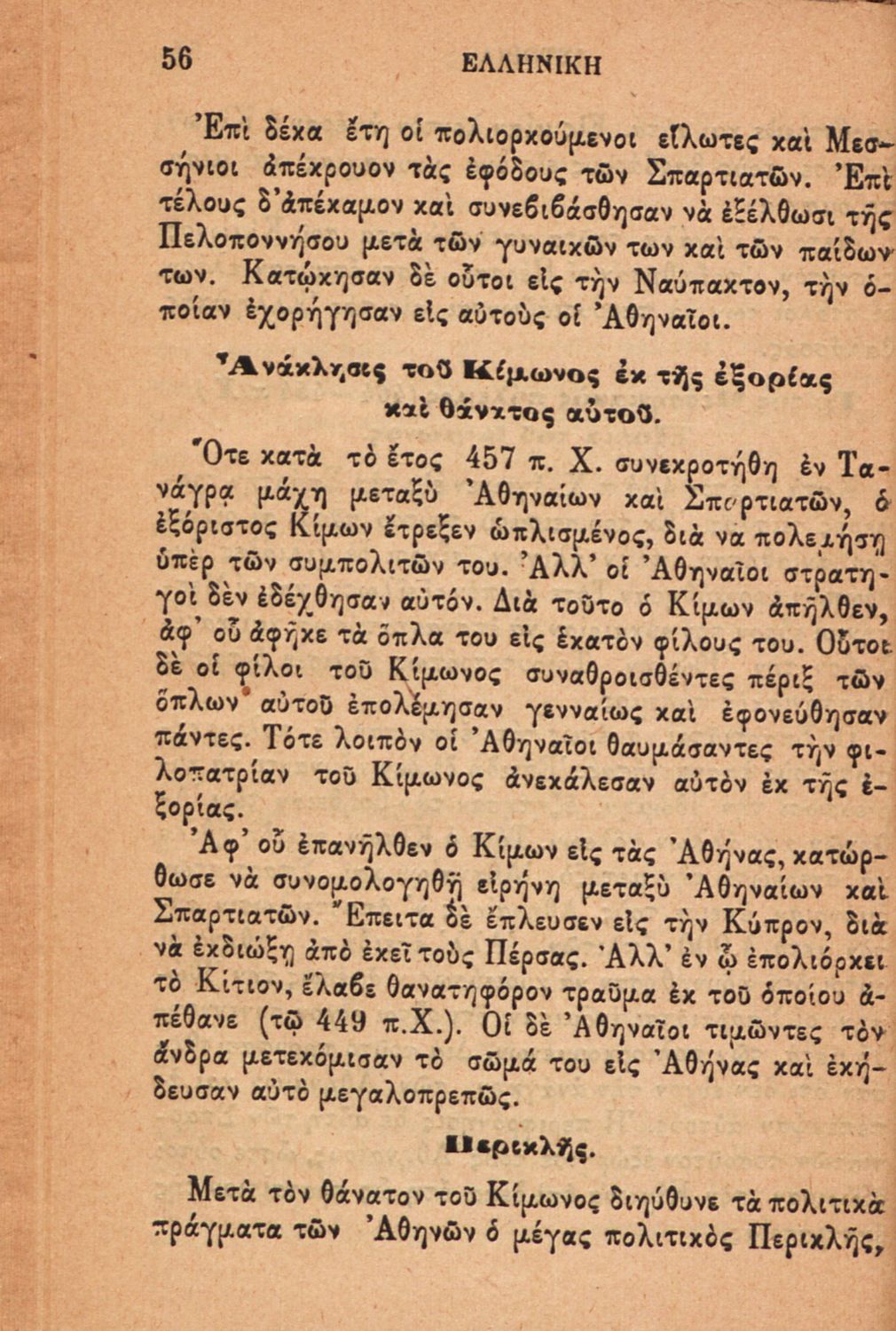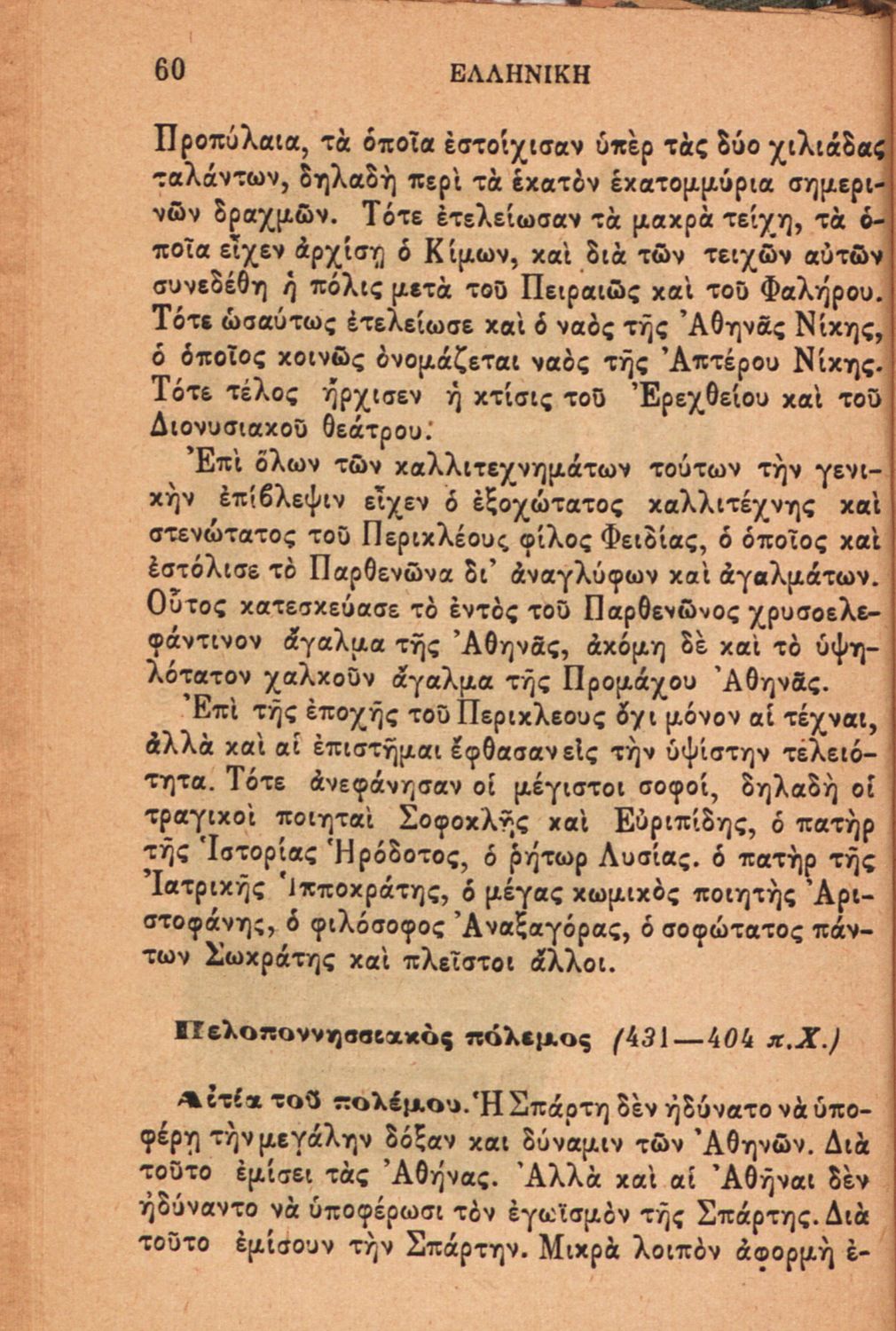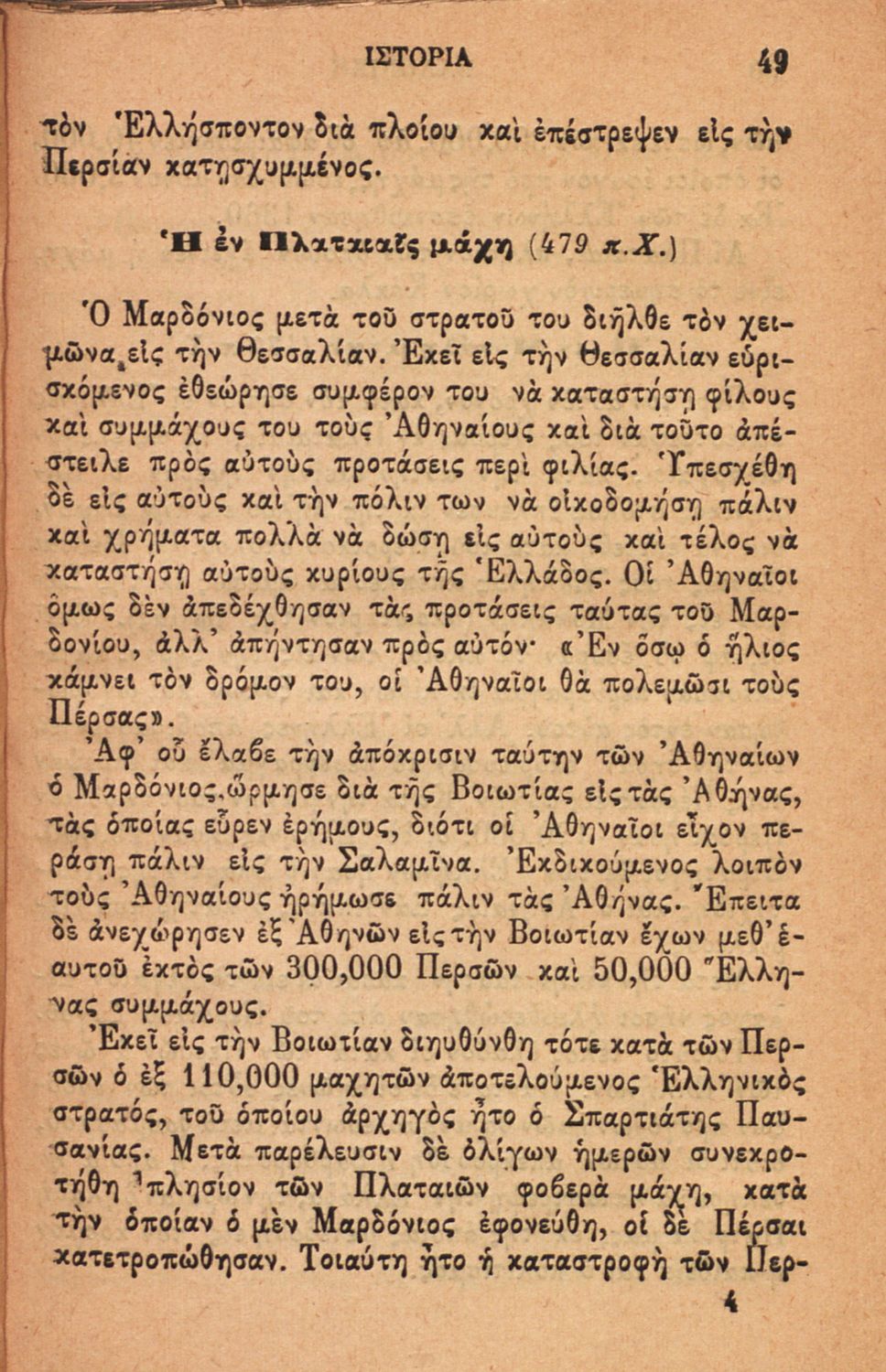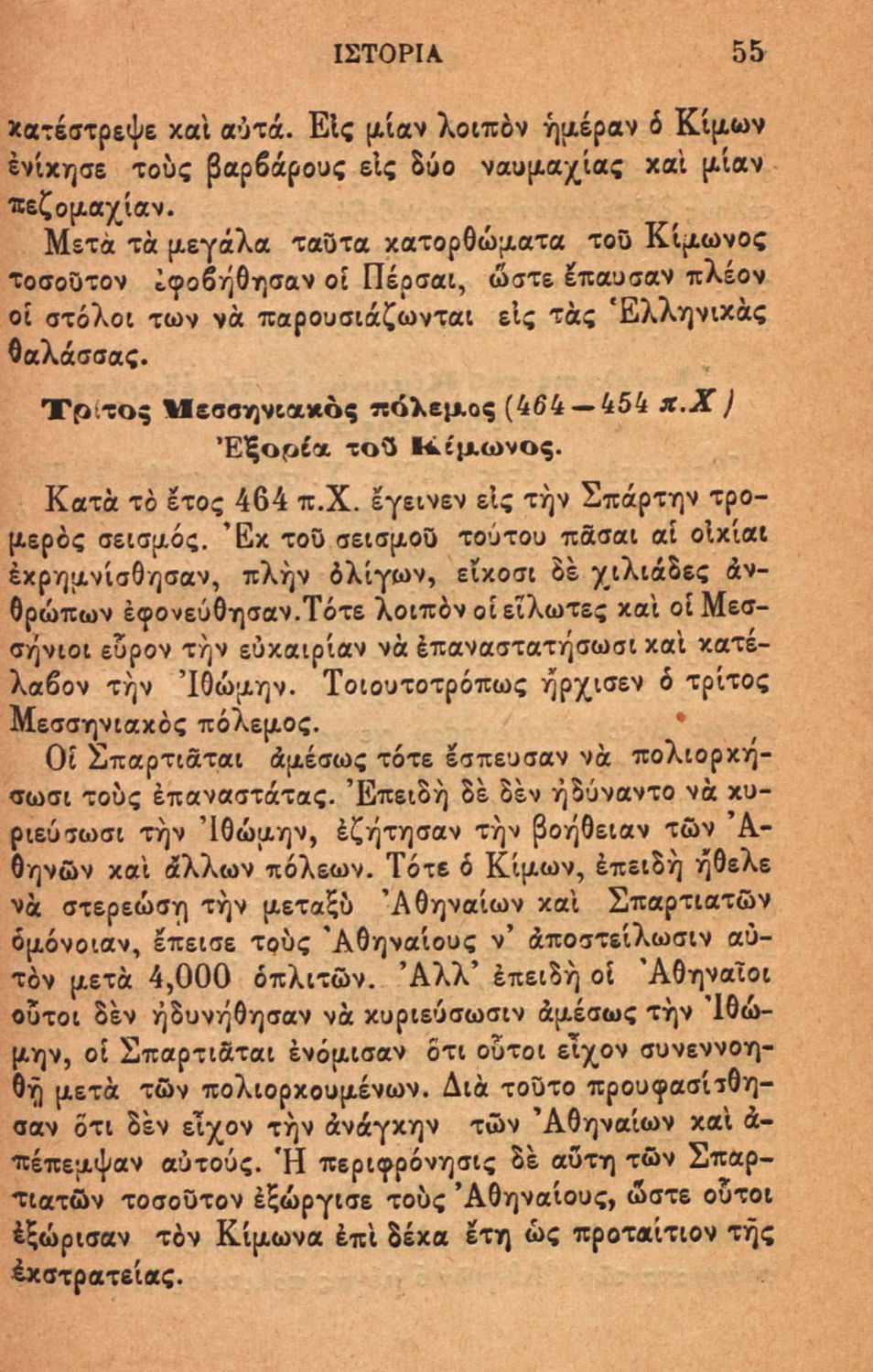 Σχολικό εγχειρίδιο Ιστορίας Α΄ Ελληνικού και Παρθεναγωγείου που καλύπτει την περίοδο από τους μυθικούς και ηρωικούς χρόνους μέχρι την μάχη της Μαντινείας και τον θάνατο του Επαμεινώνδα.