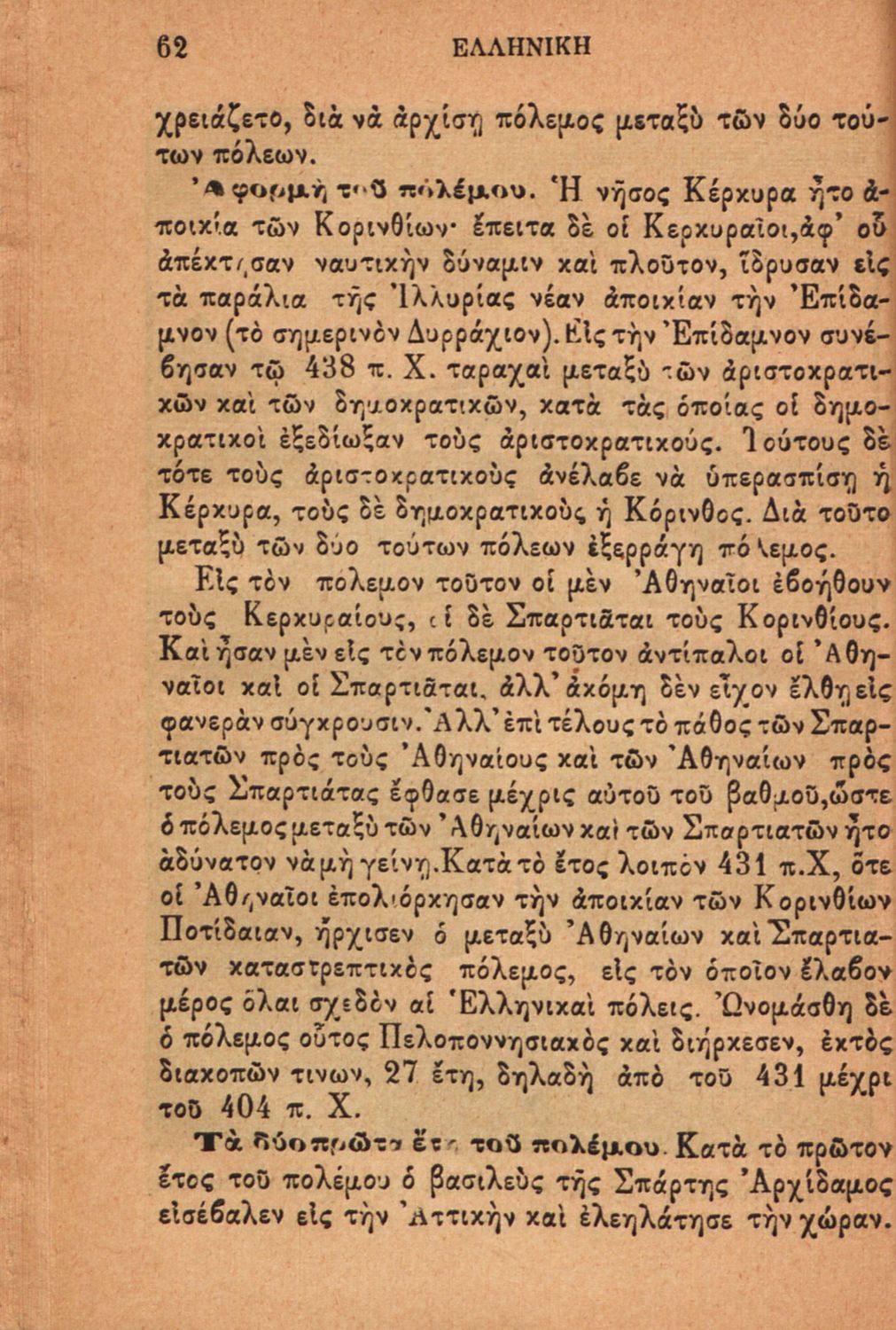 Σχολικό εγχειρίδιο Ιστορίας για τα Ελληνικά Σχολεία και Παρθεναγωγεία που καλύπτει την περίοδο από τους προϊστορικούς χρόνους μέχρι την Ελληνική Επανάσταση και τη βασιλεία του Όθωνα.
