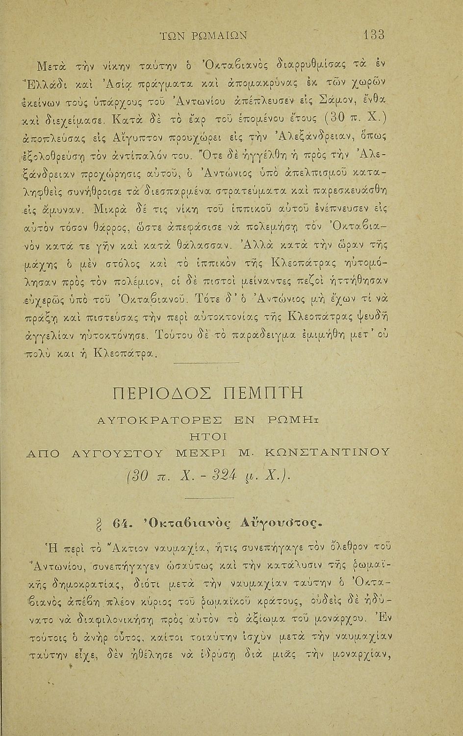 Ιστορία των Ρωμαίων από της αρχής αυτών μέχρι του Μ. Κωνσταντίνου προς χρήσιν των μαθητών της Α΄ τάξεως των Γυμνασίων