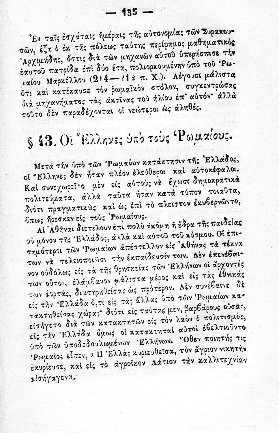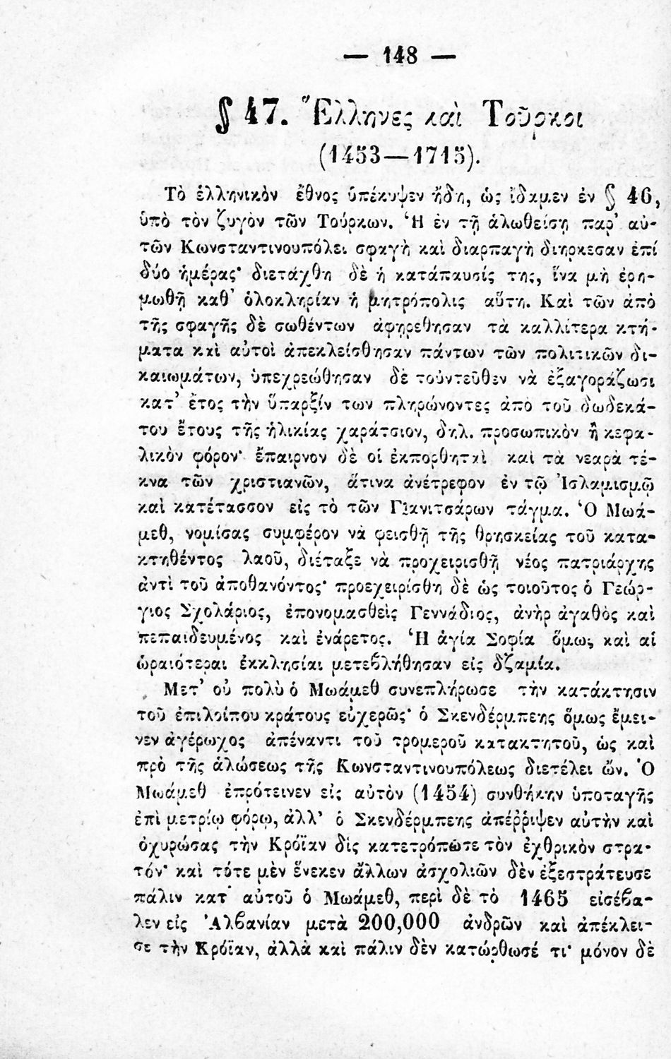 Μάθημα: Ιστορία Γλώσσα: Καθαρεύουσα Παρουσίαση περιεχομένου: Μαθητικό βοήθημα για το μάθημα της Ιστορίας. Το εγχειρίδιο περιλαμβάνει το σύνολο της ελληνικής ιστορίας από την εμφάνιση των πρώτων κατοίκων στην Ελλάδα, από τους μυθικούς και ηρωικούς χρόνους, την εξιστόρηση των γεγονότων του Πελοποννησιακού πολέμου, την μάχη των Θερμοπυλών και της Σαλαμίνας, την αίγλη της Αθήνας κατά τον Περικλή, την δυναστεία του Μ. Αλεξάνδρου, τα βυζαντινά χρόνια, την βυζαντινή αυτοκρατορία και την άλωση της Κωνσταντινούπολης από τους Τούρκους, τα χρόνια της Ελληνικής Επανάστασης και τον αγώνα για την ανεξαρτησία, τον ρόλο του Ιωάννη Καποδίστρια. |