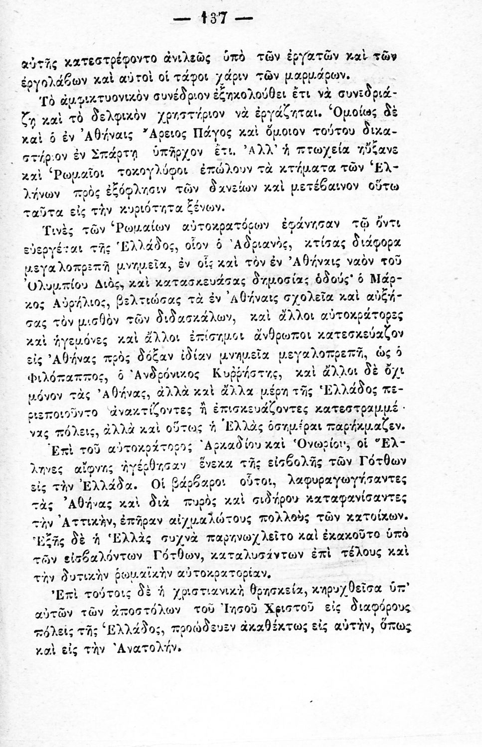 LDR 02022 2200193 4500 035 ## _a08-00053 040 ## _aΕθνική Βιβλιοθήκη της Ελλάδος 041 ## _ael 100 ## _aΔ. Πανταζής 110 ## _a53 245 0# _aΣύνοψις ιστορίας της Ελλάδος από των αρχαιοτάτων χρόνων μέχρι των νεοτάτων (1820) 250 ## _a5η Έκδοση 260 ## _aΑθήνα _bΔ. Αθ. Μαυρομμάτης _c1869 300 ## _a178 _bΕικόνες (ασπρόμαυρες), Χάρτες (ασπρόμαυροι) 520 ## _aΜαθητικό βοήθημα για το μάθημα της Ιστορίας. Το εγχειρίδιο περιλαμβάνει το σύνολο της ελληνικής ιστορίας από την εμφάνιση των πρώτων κατοίκων στην Ελλάδα, από τους μυθικούς και ηρωικούς χρόνους, την εξιστόρηση των γεγονότων του Πελοποννησιακού πολέμου, την μάχη των Θερμοπυλών και της Σαλαμίνας, την αίγλη της Αθήνας κατά τον Περικλή, την δυναστεία του Μ. Αλεξάνδρου, τα βυζαντινά χρόνια, την βυζαντινή αυτοκρατορία και την άλωση της Κωνσταντινούπολης από τους Τούρκους, τα χρόνια της Ελληνικής Επανάστασης και τον αγώνα για την ανεξαρτησία, τον ρόλο του Ιωάννη Καποδίστρια. 522 ## _aΕλλάδα 546 ## _aΚαθαρεύουσα 563 ## _aΣκληρό Εξώφυλλο 650 #4 _aΑθήνα _aΆλωση Κωνσταντινούπολης _aΑρχαία _aΒυζαντινή και νεώτερη ιστορία _aΙστορία _aΚαθαρεύουσα _aΚαποδίστριας _aΌθωνας _aΠελοποννησιακός πόλεμος