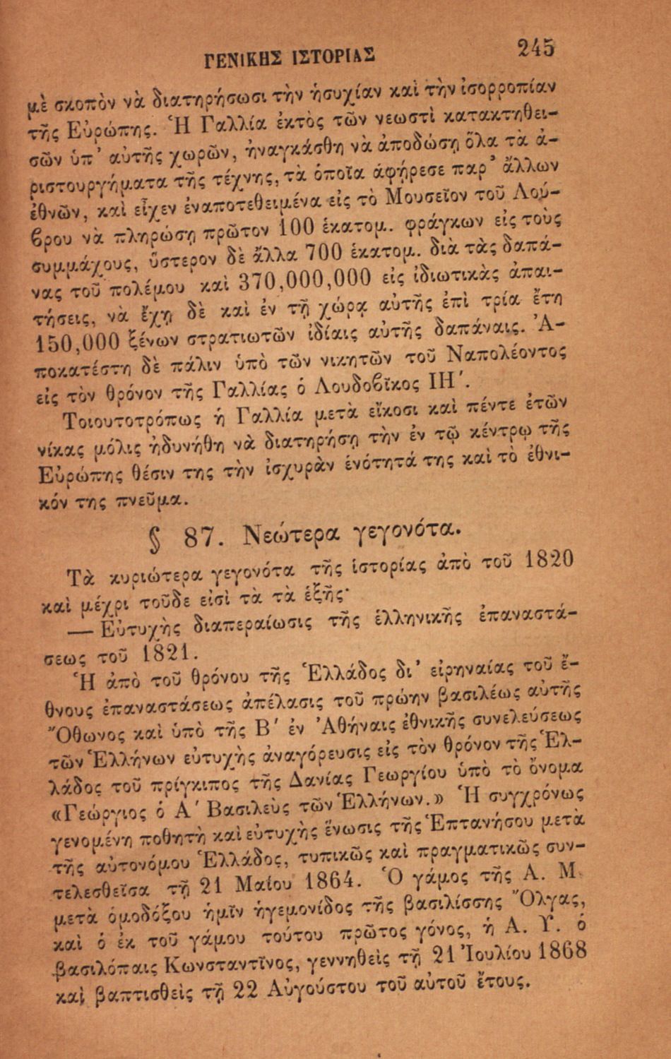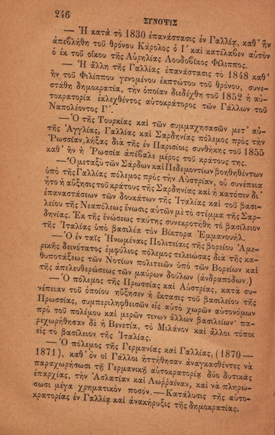 LDR 01909 2200193 4500 035 ## _a08-00056 040 ## _aΕθνική Βιβλιοθήκη της Ελλάδος 041 ## _ael 100 ## _aΔ. Πανταζής 110 ## _a56 245 0# _aΣύνοψις γενικής ιστορίας 260 ## _aΑθήνα 300 ## _a264 _bΕικόνες (ασπρόμαυρες), Χάρτες (ασπρόμαυροι) 520 ## _aΣχολικό εγχειρίδιο για τις τάξεις του Ελληνικού για το μάθημα της Ιστορίας. Το εγχειρίδιο περιλαμβάνει εισαγωγικά τον ορισμό και τις διαιρέσεις της γενικής ιστορίας. Περιγράφονται γεγονότα από την αρχαία ελληνική ιστορία, από την εμφάνιση των πρώτων κατοίκων στην Ελλάδα, τα γεγονότα του Πελοποννησιακού πολέμου, την υποταγή των Ελλήνων στους Ρωμαίους, τις ελληνικές αποικίες, την παρακμή του ρωμαϊκού κράτους. Το δεύτερο μέρος ασχολείται με την βυζαντινή / μέση ιστορία, την κατάσταση στην Ευρώπη κατά τον 15ο - 17ο αιώνα, την γαλλική επανάσταση κ.α. 521 ## _aΕλληνικό Σχολείο 522 ## _aΕλλάδα 546 ## _aΚαθαρεύουσα 563 ## _aΣκληρό Εξώφυλλο 650 #4 _aΑρχαία και βυζαντινή ιστορία _aΓαλλία _aΓαλλική Επανάσταση _aΕλληνικές αποικίες _aΕλληνικού _aΕυρώπη κατά τον 15ο έως 18ο αιώνα _aΙσπανία _aΙστορία _aΚαθαρεύουσα _aΠελοποννησιακός πόλεμος