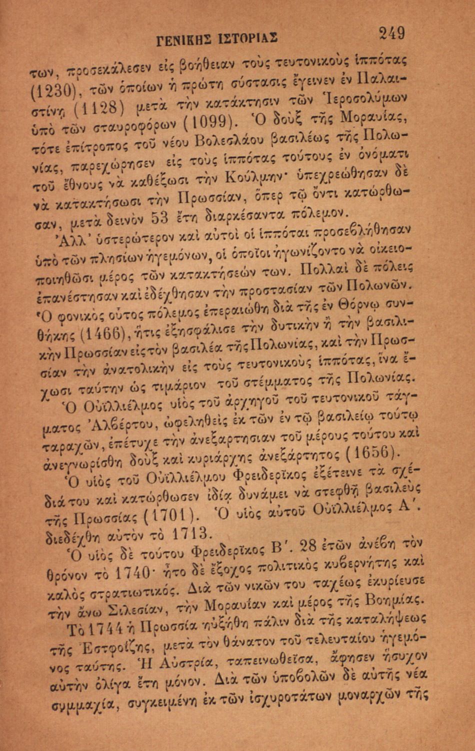 Βαθμίδα εκπαίδευσης: Δευτεροβάθμια Τάξη: Ελληνικό Σχολείο Μάθημα: Ιστορία Γλώσσα: Καθαρεύουσα Παρουσίαση περιεχομένου: Σχολικό εγχειρίδιο για τις τάξεις του Ελληνικού για το μάθημα της Ιστορίας. Το εγχειρίδιο περιλαμβάνει εισαγωγικά τον ορισμό και τις διαιρέσεις της γενικής ιστορίας. Περιγράφονται γεγονότα από την αρχαία ελληνική ιστορία, από την εμφάνιση των πρώτων κατοίκων στην Ελλάδα, τα γεγονότα του Πελοποννησιακού πολέμου, την υποταγή των Ελλήνων στους Ρωμαίους, τις ελληνικές αποικίες, την παρακμή του ρωμαϊκού κράτους. Το δεύτερο μέρος ασχολείται με την βυζαντινή / μέση ιστορία, την κατάσταση στην Ευρώπη κατά τον 15ο - 17ο αιώνα, την γαλλική επανάσταση κ.α. |