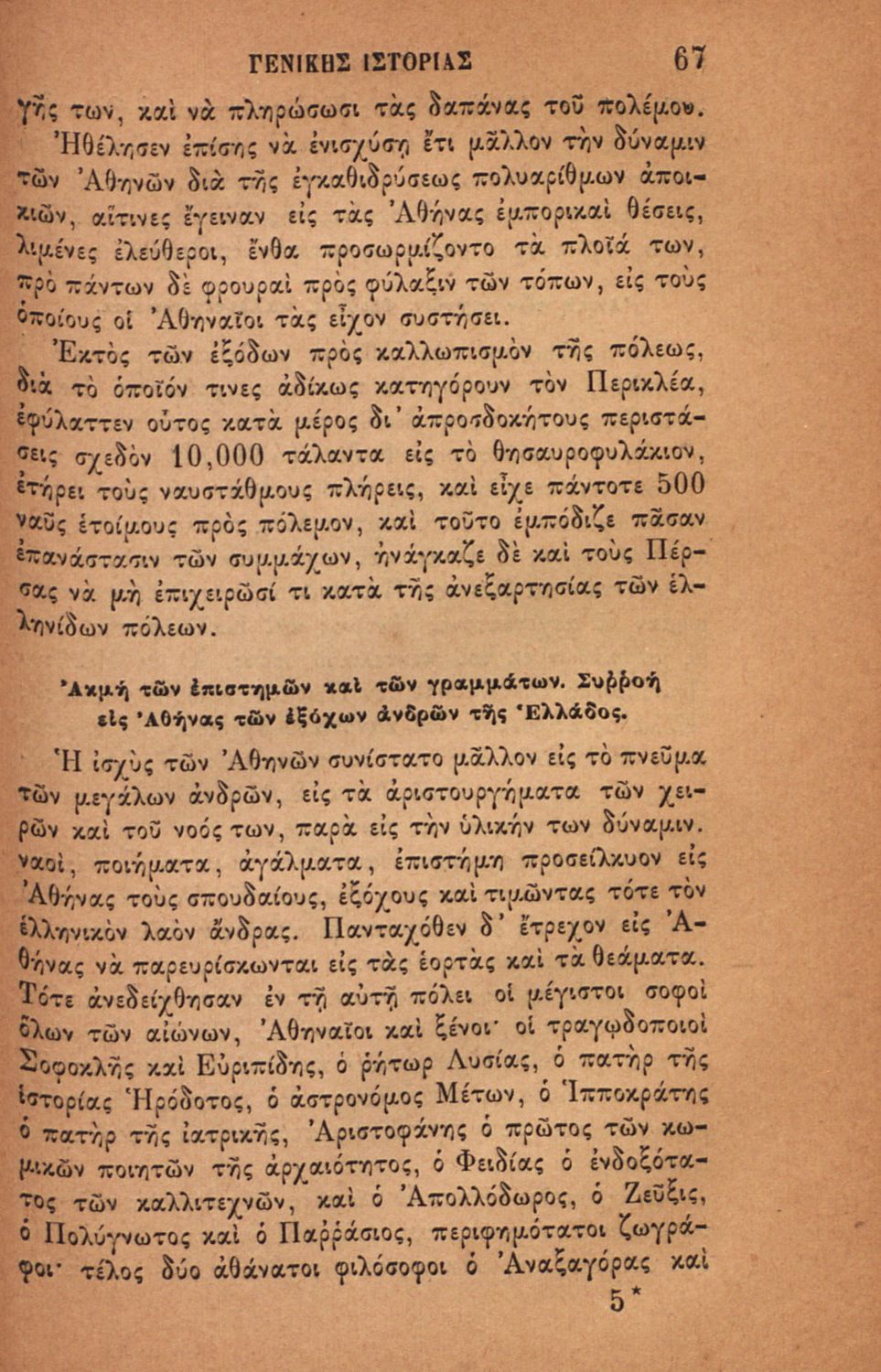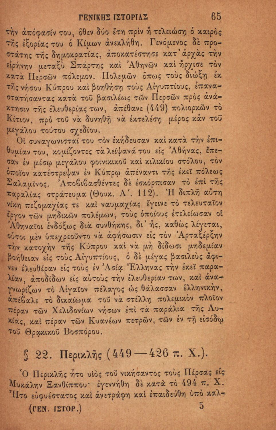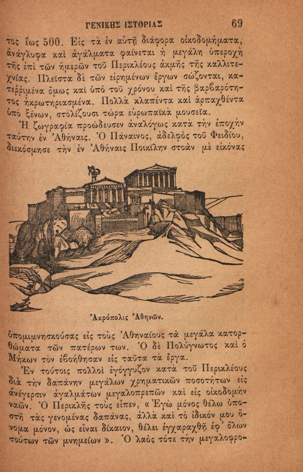 Βαθμίδα εκπαίδευσης: Δευτεροβάθμια Τάξη: Ελληνικό Σχολείο Μάθημα: Ιστορία Γλώσσα: Καθαρεύουσα Παρουσίαση περιεχομένου: Σχολικό εγχειρίδιο για τις τάξεις του Ελληνικού για το μάθημα της Ιστορίας. Το εγχειρίδιο περιλαμβάνει εισαγωγικά τον ορισμό και τις διαιρέσεις της γενικής ιστορίας. Περιγράφονται γεγονότα από την αρχαία ελληνική ιστορία, από την εμφάνιση των πρώτων κατοίκων στην Ελλάδα, τα γεγονότα του Πελοποννησιακού πολέμου, την υποταγή των Ελλήνων στους Ρωμαίους, τις ελληνικές αποικίες, την παρακμή του ρωμαϊκού κράτους. Το δεύτερο μέρος ασχολείται με την βυζαντινή / μέση ιστορία, την κατάσταση στην Ευρώπη κατά τον 15ο - 17ο αιώνα, την γαλλική επανάσταση κ.α. |