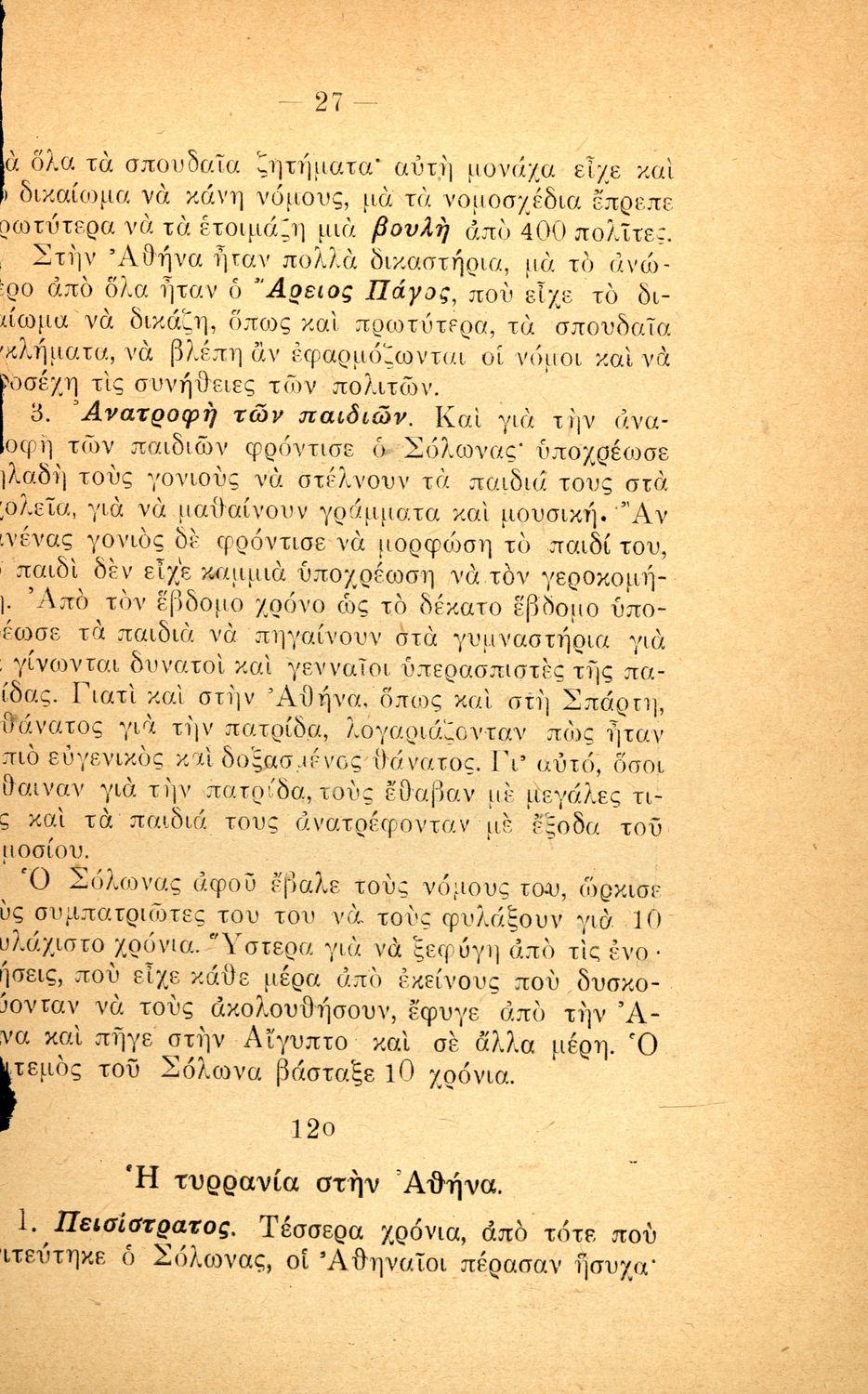 Μαθητικό βοήθημα Ιστορίας. Γ΄ και Δ΄ Δημοτικού Παρθεναγωγείου που καλύπτει το διάστημα από τους προϊστορικούς χρόνους ως τη μάχη της Μαντίνειας