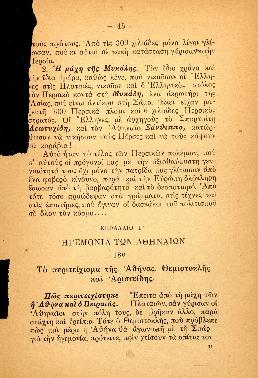 LDR 01075 2200193 4500 035 ## _a08-00060 040 ## _aΕθνική Βιβλιοθήκη της Ελλάδος 041 ## _ael 100 ## _aΝικόλαος Σ. Γκινόπουλος 110 ## _a60 245 0# _aΙστορικοί χρόνοι των αρχαίων Ελλήνων για την Δ΄ τάξη των Δημοτικών Σχολείων 260 ## _aΑθήνα _bΔημητράκος _c1930 300 ## _a92 _bΕξώφυλλο (έγχρωμο), Σκίτσα (ασπρόμαυρα) 520 ## _aΜαθητικό βοήθημα Ιστορίας Δ΄ Δημοτικού που καλύπτει την περίοδο από την κάθοδο των Δωριέων ως την κατάληψη της Ελλάδας από τους Ρωμαίους. 521 ## _aΔ' Δημοτικού 522 ## _aΕλλάδα 546 ## _aΔημοτική 563 ## _aΜαλακό Εξώφυλλο 650 #4 _aΑθήνα _aΔωριείς _aΘήβα _aΜακεδονία _aΠερσικοί πόλεμοι _aΡωμαίοι _aΣπάρτη