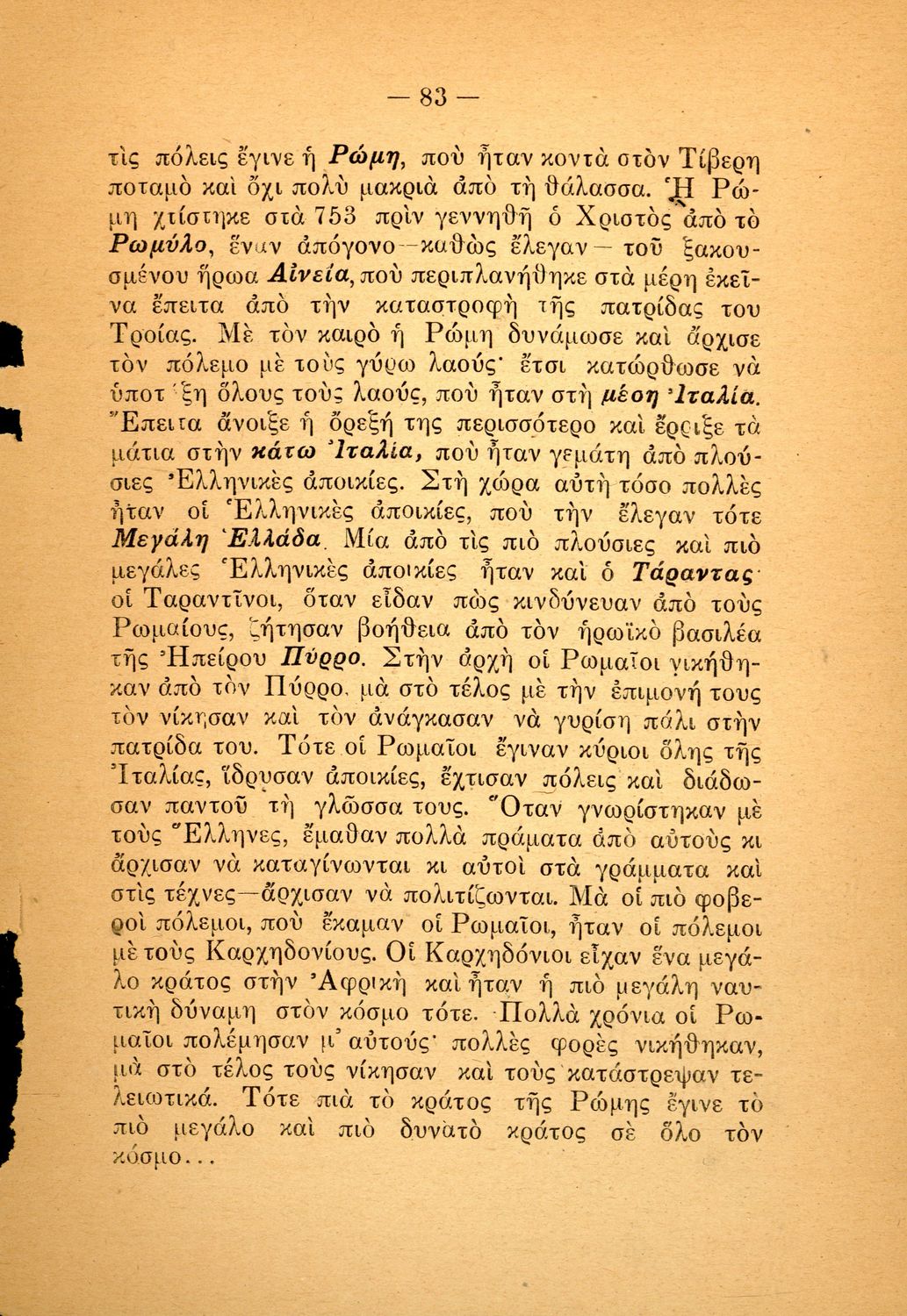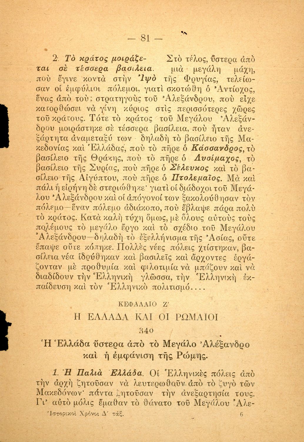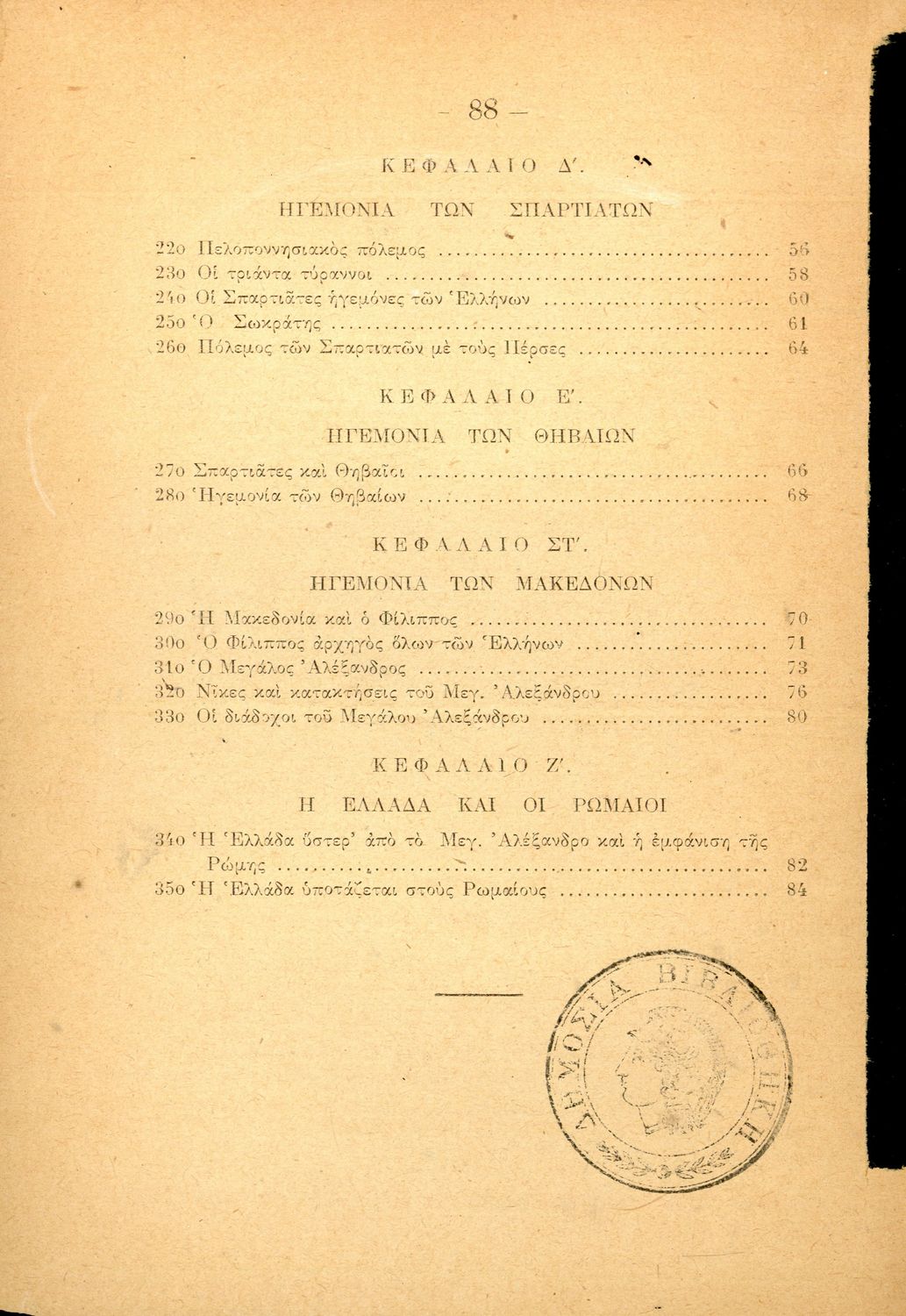Βαθμίδα εκπαίδευσης: Πρωτοβάθμια Τάξη: Δ' Δημοτικού Μάθημα: Ιστορία Γλώσσα: Δημοτική Παρουσίαση περιεχομένου: Μαθητικό βοήθημα Ιστορίας Δ΄ Δημοτικού που καλύπτει την περίοδο από την κάθοδο των Δωριέων ως την κατάληψη της Ελλάδας από τους Ρωμαίους. |