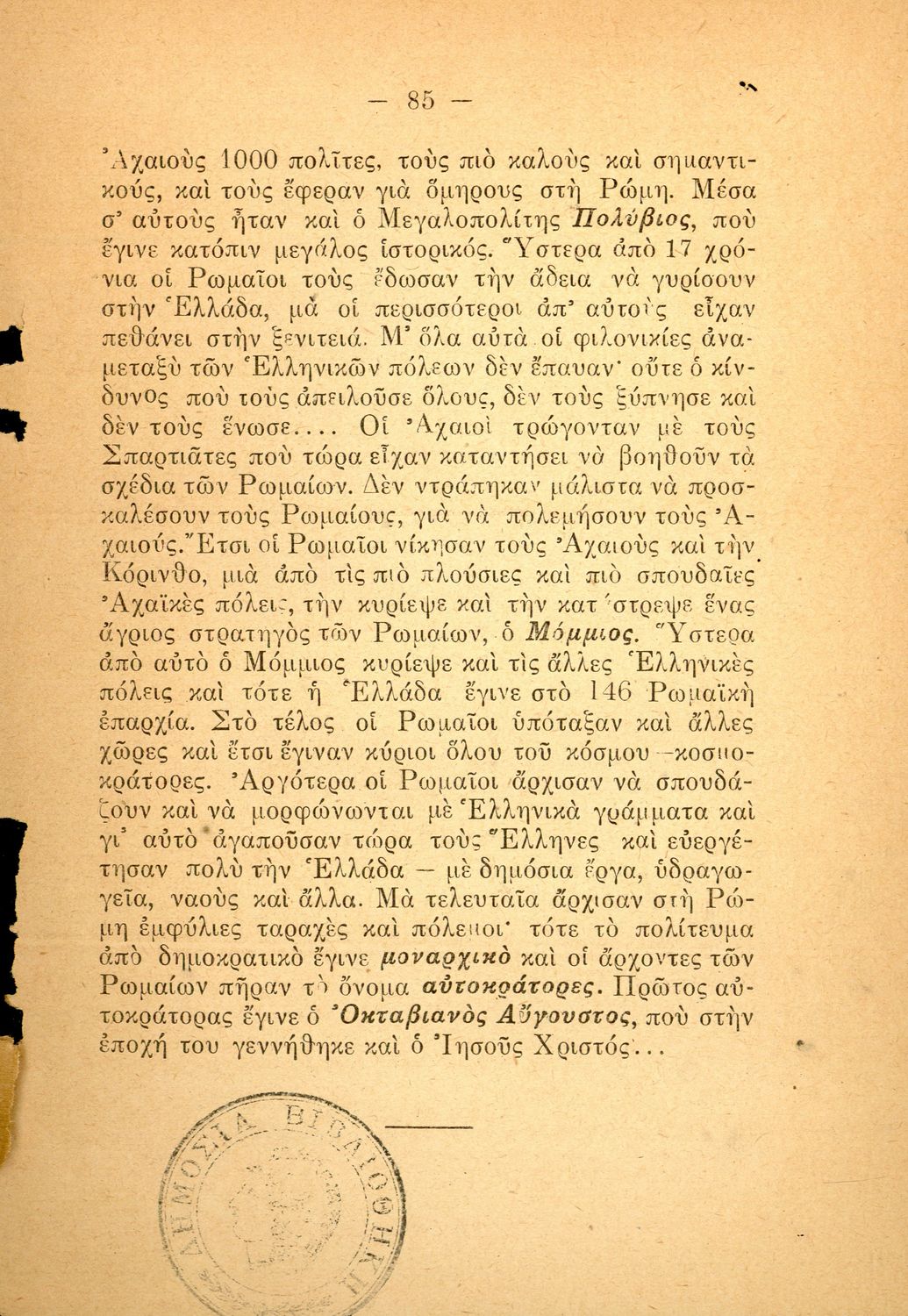 Μαθητικό βοήθημα Ιστορίας Δ΄ Δημοτικού που καλύπτει την περίοδο από την κάθοδο των Δωριέων ως την κατάληψη της Ελλάδας από τους Ρωμαίους.