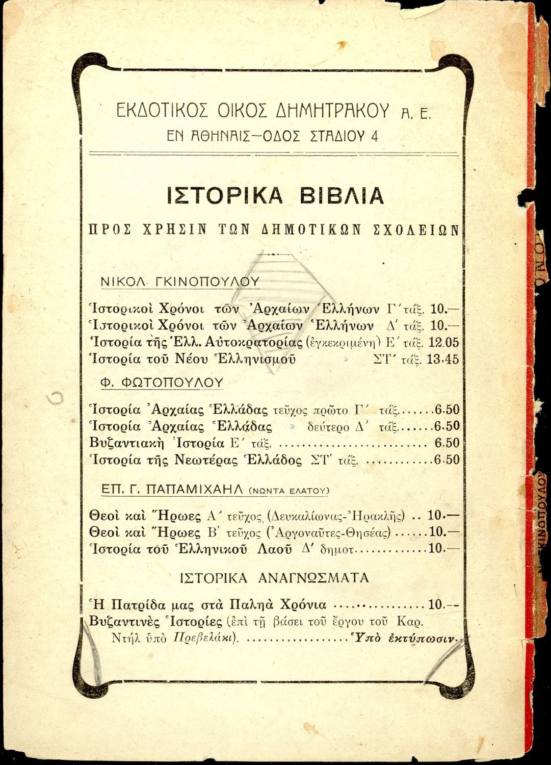 Εκδότης: Δημητράκος Έτος έκδοσης: 1930 Τόπος έκδοσης: Αθήνα |
