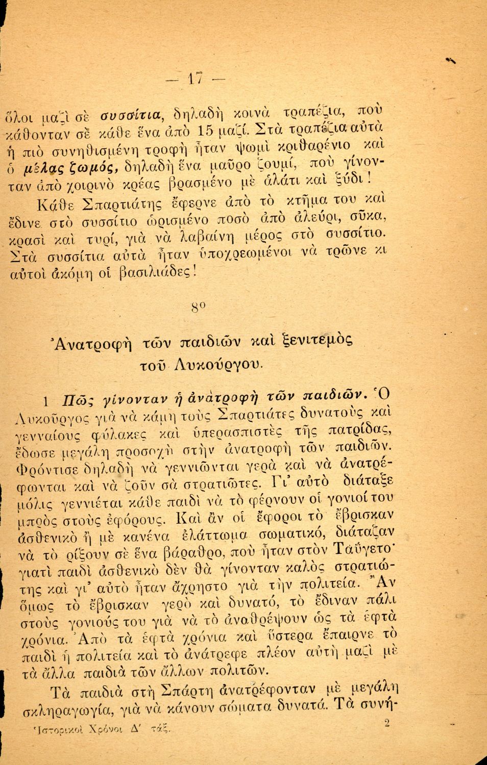 Βαθμίδα εκπαίδευσης: Πρωτοβάθμια Τάξη: Δ' Δημοτικού Μάθημα: Ιστορία Γλώσσα: Δημοτική Παρουσίαση περιεχομένου: Μαθητικό βοήθημα Ιστορίας Δ΄ Δημοτικού που καλύπτει την περίοδο από την κάθοδο των Δωριέων ως την κατάληψη της Ελλάδας από τους Ρωμαίους. |