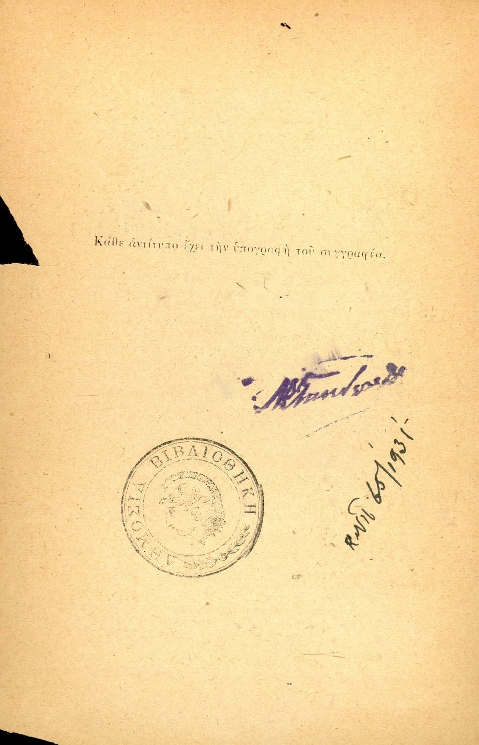 Εκδότης: Δημητράκος Έτος έκδοσης: 1930 Τόπος έκδοσης: Αθήνα |
