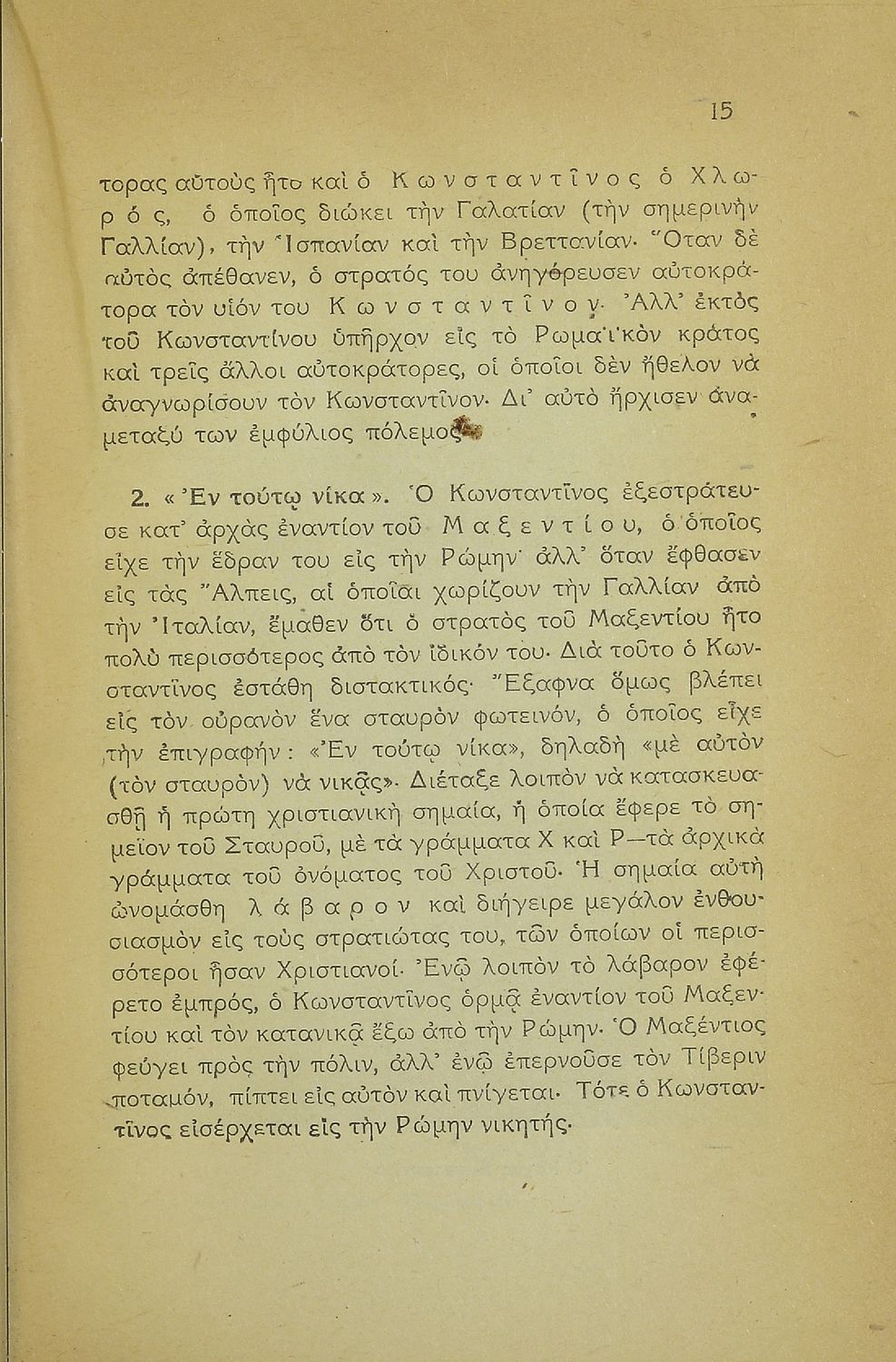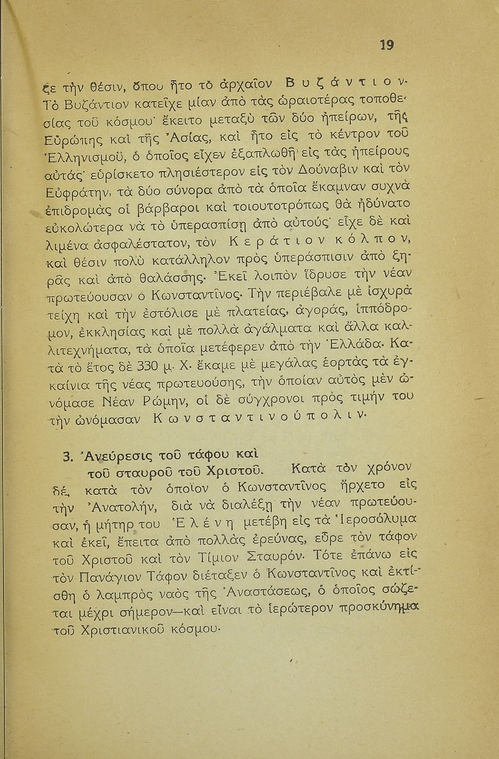 Βαθμίδα εκπαίδευσης: Πρωτοβάθμια Τάξη: Ε' Δημοτικού Μάθημα: Ιστορία Γλώσσα: Καθαρεύουσα Παρουσίαση περιεχομένου: Σχολικό εγχειρίδιο για την Ε΄ Δημοτικού για το μάθημα της Ιστορίας. Το εγχειρίδιο αποτελείται από 6 μέρη όπου αναπτύσσεται το σύνολο της ιστορίας του βυζαντινού ελληνισμού. Τα κυριότερα θέματα του βιβλίου είναι η ελληνορωμαϊκή εποχή και η κοσμοκρατορία των Ρωμαίων και ο χριστιανισμός, το χριστιανικό και ελληνικό κράτος της Ανατολής, η εποχή των θρησκευτικών μεταρρυθμίσεων στο Βυζάντιο, η παρακμή του Βυζαντίου και οι Σταυροφορίες, οι αγώνες των Τούρκων και των Ελλήνων και η άλωση της Κωνσταντινούπολης, η κατάσταση στην Ευρώπη μετά την άλωση. |