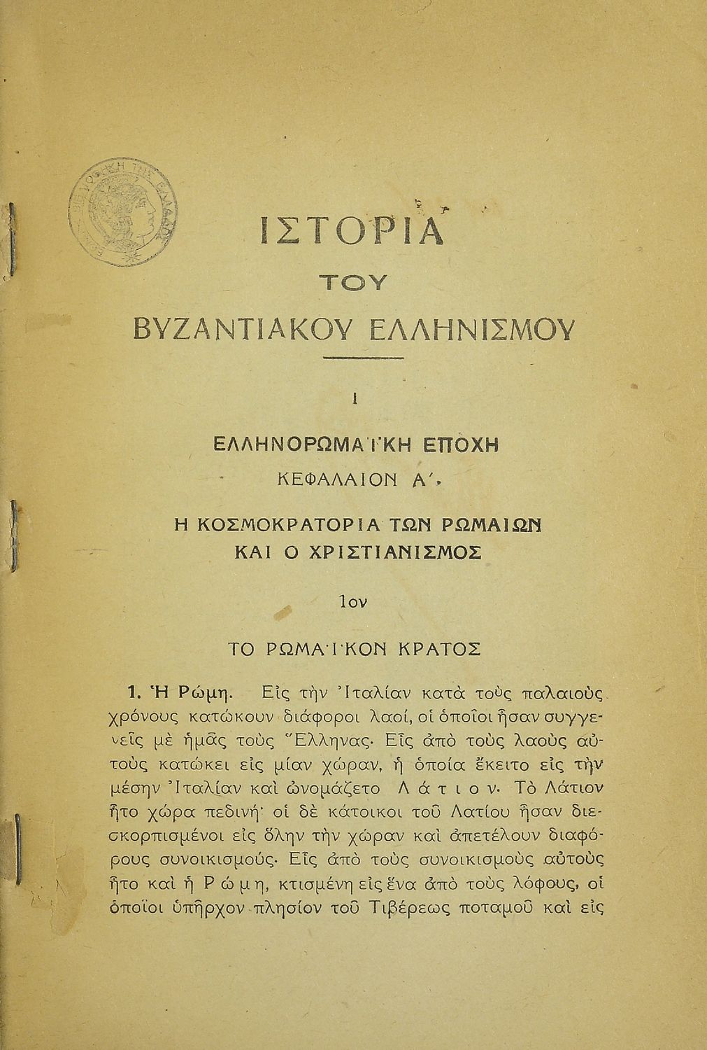 Σχολικό εγχειρίδιο για την Ε΄ Δημοτικού για το μάθημα της Ιστορίας. Το εγχειρίδιο αποτελείται από 6 μέρη όπου αναπτύσσεται το σύνολο της ιστορίας του βυζαντινού ελληνισμού. Τα κυριότερα θέματα του βιβλίου είναι η ελληνορωμαϊκή εποχή και η κοσμοκρατορία των Ρωμαίων και ο χριστιανισμός, το χριστιανικό και ελληνικό κράτος της Ανατολής, η εποχή των θρησκευτικών μεταρρυθμίσεων στο Βυζάντιο, η παρακμή του Βυζαντίου και οι Σταυροφορίες, οι αγώνες των Τούρκων και των Ελλήνων και η άλωση της Κωνσταντινούπολης, η κατάσταση στην Ευρώπη μετά την άλωση.
