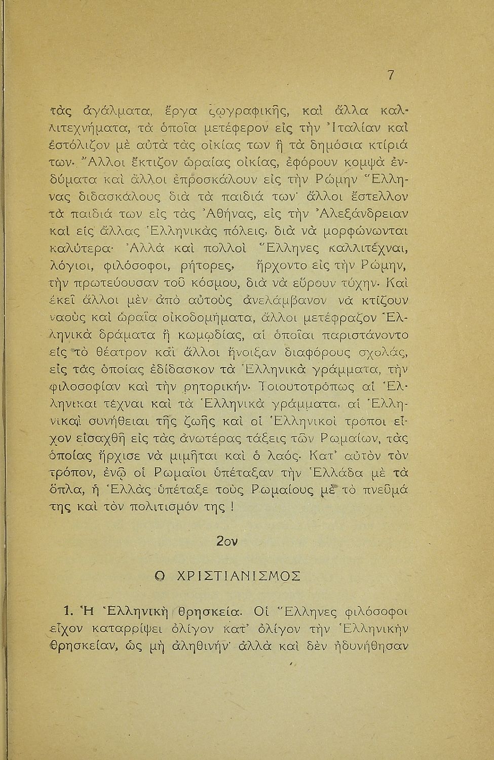 LDR 01829 2200193 4500 035 ## _a08-00061 040 ## _aΕθνική Βιβλιοθήκη της Ελλάδος 041 ## _ael 100 ## _aΝικόλαος Σ. Γκινόπουλος 110 ## _a61 245 0# _aΙστορία του βυζαντιακού ελληνισμού εγκεκριμένη διά την Ε΄ τάξιν των Δημοτικών Σχολείων 260 ## _aΑθήνα _bΔ. Δημητράκος _c1946 300 ## _a146 _bΣκίτσα (ασπρόμαυρα) 520 ## _aΣχολικό εγχειρίδιο για την Ε΄ Δημοτικού για το μάθημα της Ιστορίας. Το εγχειρίδιο αποτελείται από 6 μέρη όπου αναπτύσσεται το σύνολο της ιστορίας του βυζαντινού ελληνισμού. Τα κυριότερα θέματα του βιβλίου είναι η ελληνορωμαϊκή εποχή και η κοσμοκρατορία των Ρωμαίων και ο χριστιανισμός, το χριστιανικό και ελληνικό κράτος της Ανατολής, η εποχή των θρησκευτικών μεταρρυθμίσεων στο Βυζάντιο, η παρακμή του Βυζαντίου και οι Σταυροφορίες, οι αγώνες των Τούρκων και των Ελλήνων και η άλωση της Κωνσταντινούπολης, η κατάσταση στην Ευρώπη μετά την άλωση. 521 ## _aΕ' Δημοτικού 522 ## _aΕλλάδα 546 ## _aΚαθαρεύουσα 563 ## _aΜαλακό Εξώφυλλο 650 #4 _aΒυζάντιο _aΕυρώπη _aΡωμαίοι _aΤουρκοκρατία _aΦραγκοκρατία _aΧριστιανισμός