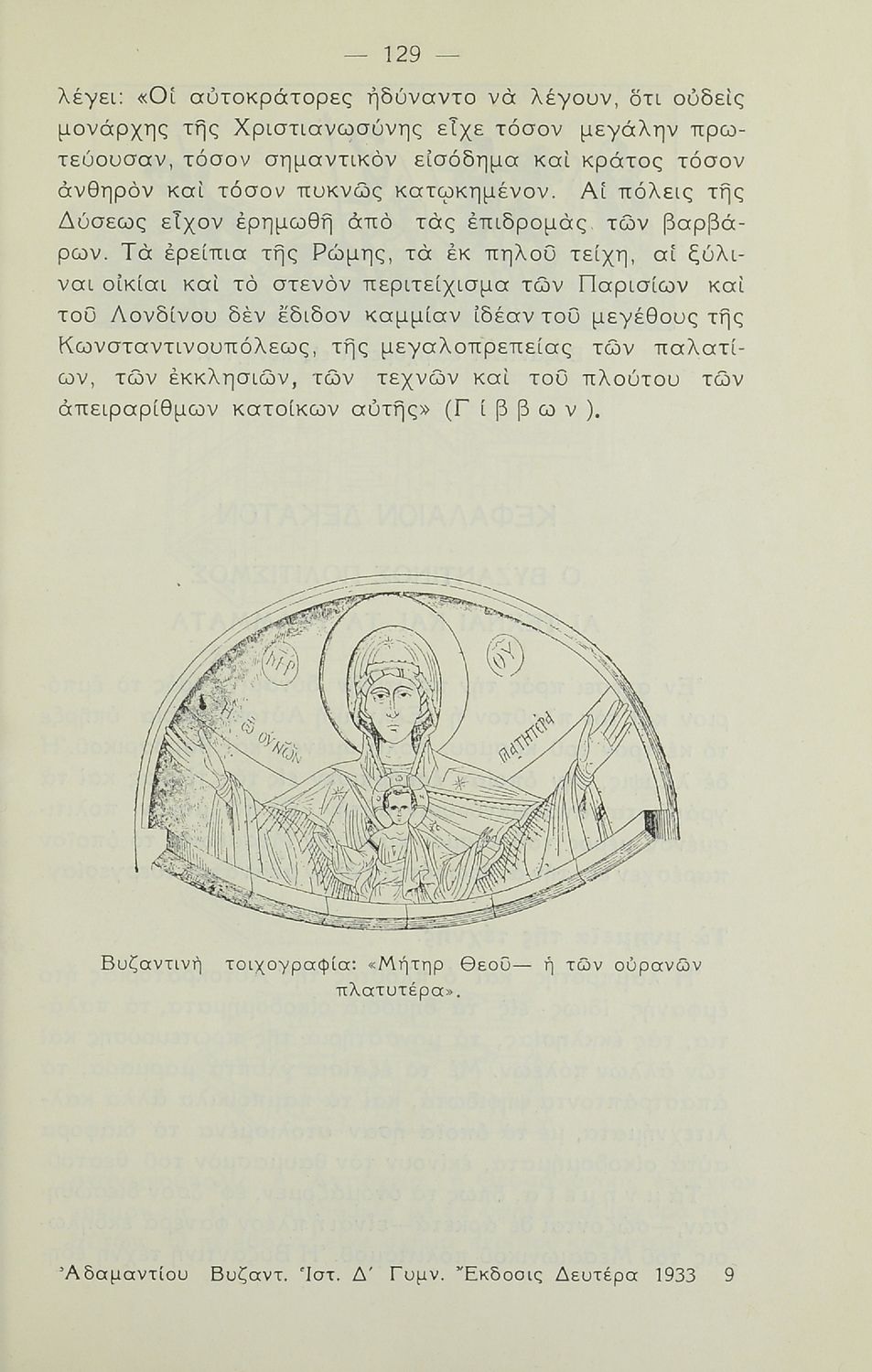 Σχολικό εγχειρίδιο Ιστορίας. Δ΄ Γυμνασίου που καλύπτει την περίοδο από την ενθρόνιση του Ιουστινιανού μέχρι και την περίοδο της Φραγκοκρατίας και την άλωση της Κωνσταντινούπολης. Σκοπό έχει να καλλιεργήσει την εθνική συνείδηση.