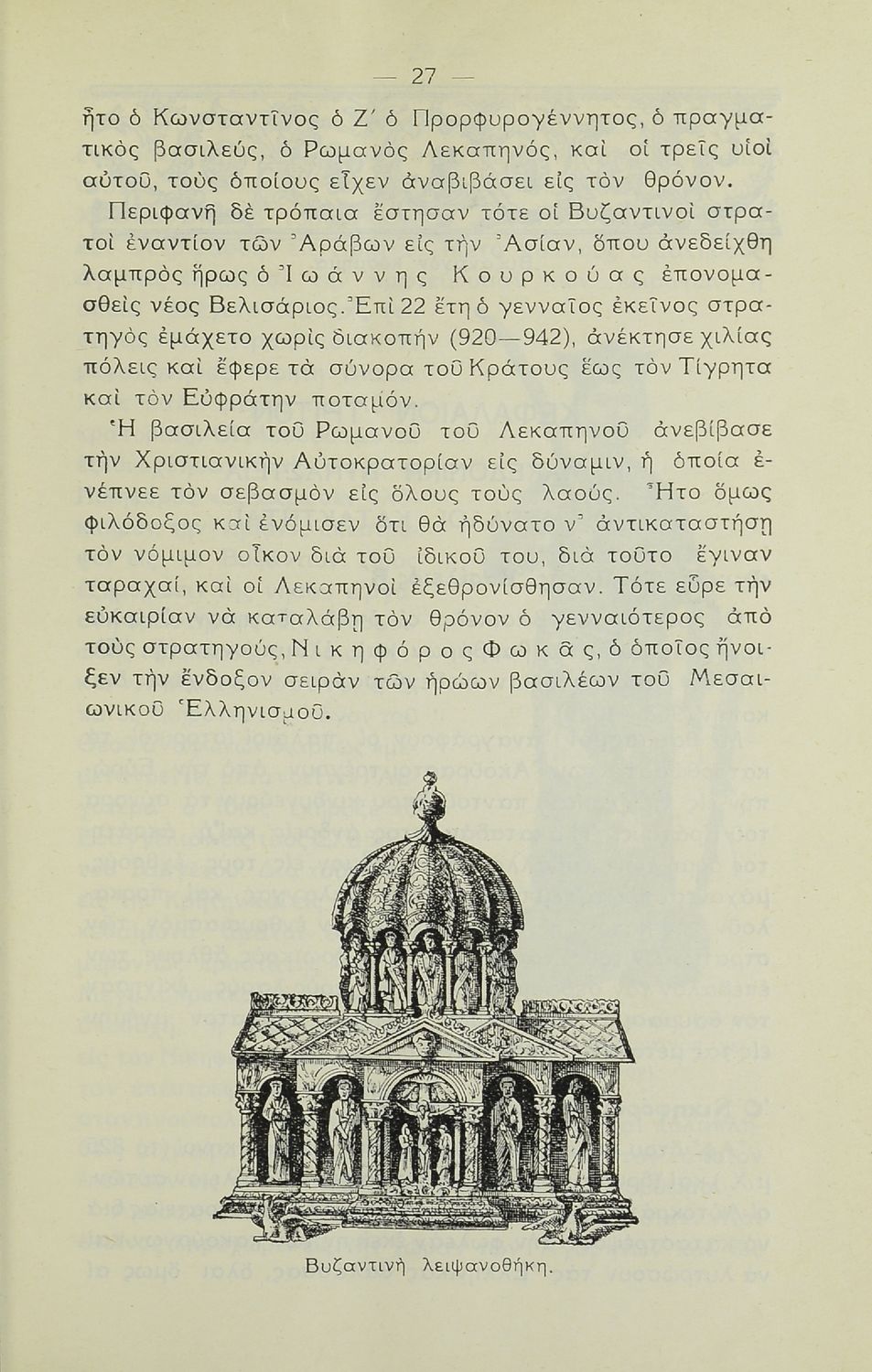 Σχολικό εγχειρίδιο Ιστορίας. Δ΄ Γυμνασίου που καλύπτει την περίοδο από την ενθρόνιση του Ιουστινιανού μέχρι και την περίοδο της Φραγκοκρατίας και την άλωση της Κωνσταντινούπολης. Σκοπό έχει να καλλιεργήσει την εθνική συνείδηση.