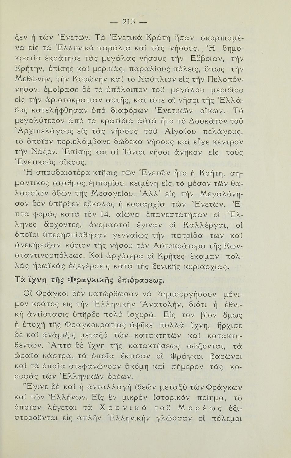 Βαθμίδα εκπαίδευσης: Δευτεροβάθμια Τάξη: Δ' Γυμνασίου Μάθημα: Ιστορία Γλώσσα: Καθαρεύουσα Παρουσίαση περιεχομένου: Σχολικό εγχειρίδιο Ιστορίας. Δ΄ Γυμνασίου που καλύπτει την περίοδο από την ενθρόνιση του Ιουστινιανού μέχρι και την περίοδο της Φραγκοκρατίας και την άλωση της Κωνσταντινούπολης. Σκοπό έχει να καλλιεργήσει την εθνική συνείδηση. |