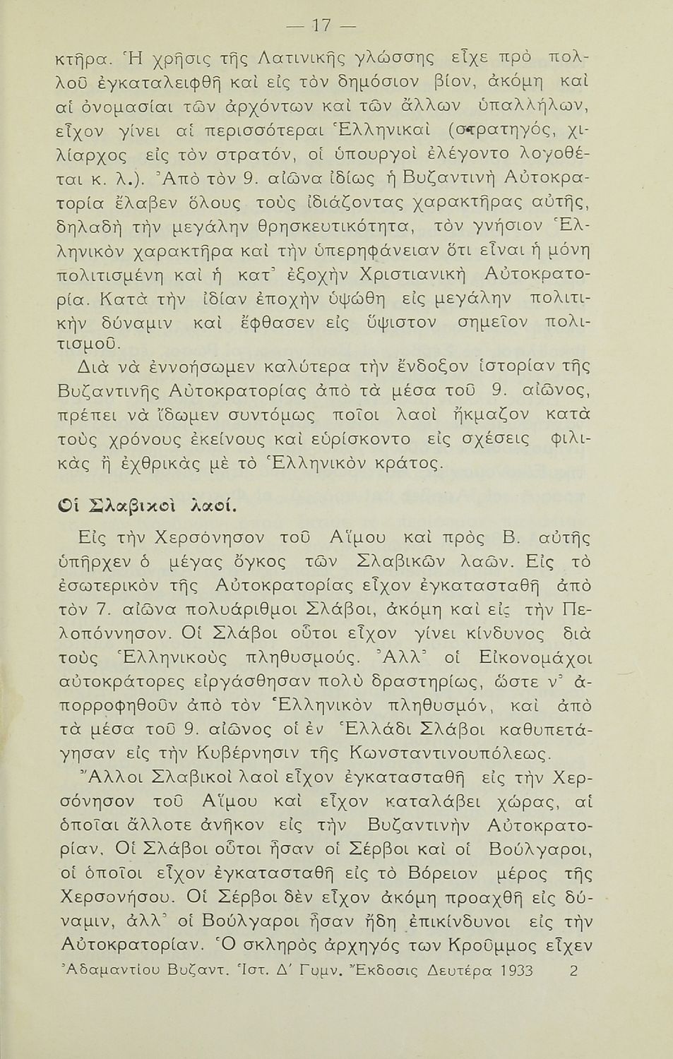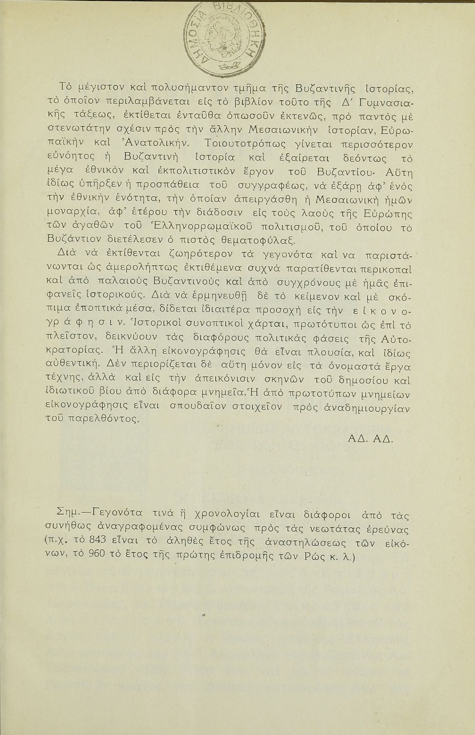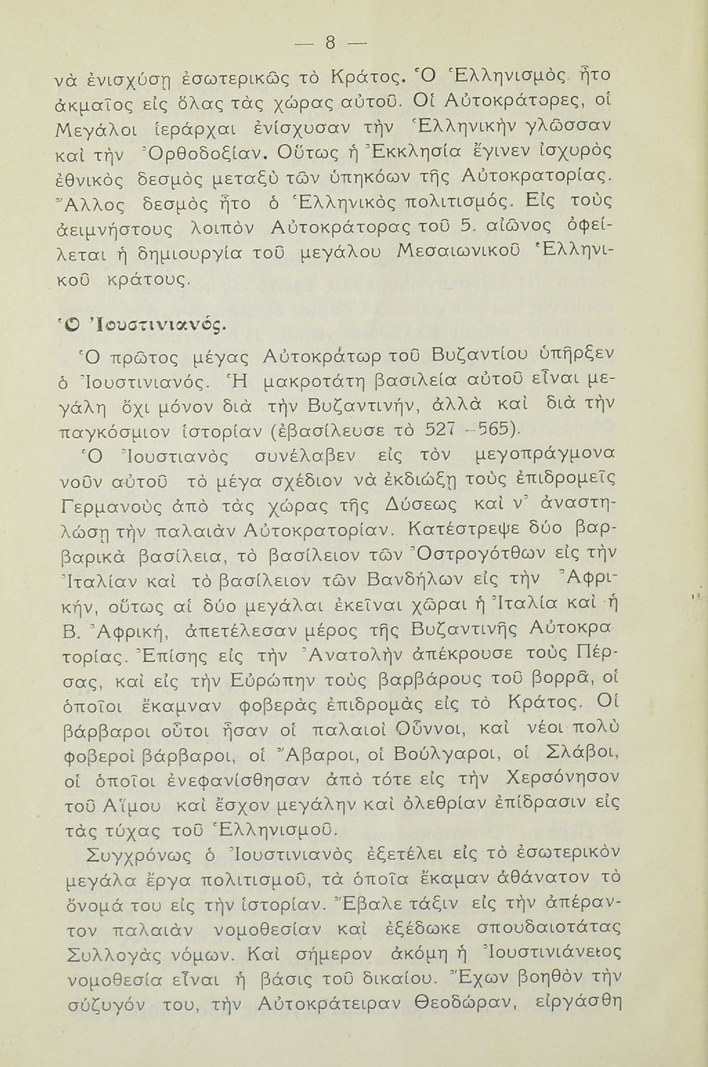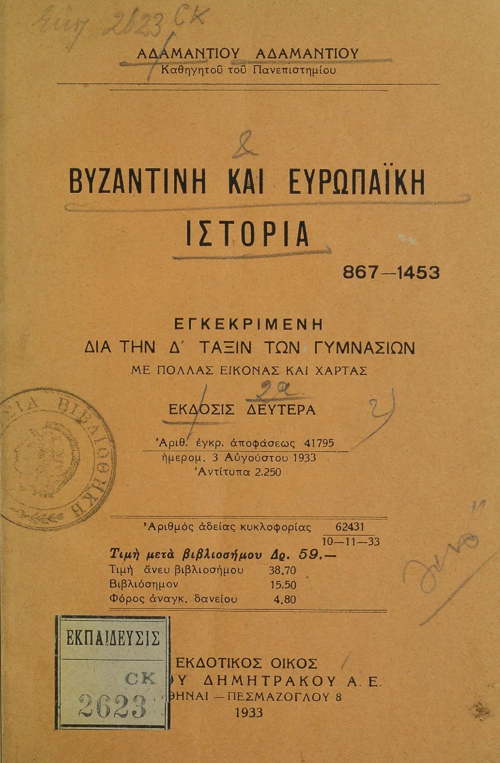 Σχολικό εγχειρίδιο Ιστορίας. Δ΄ Γυμνασίου που καλύπτει την περίοδο από την ενθρόνιση του Ιουστινιανού μέχρι και την περίοδο της Φραγκοκρατίας και την άλωση της Κωνσταντινούπολης. Σκοπό έχει να καλλιεργήσει την εθνική συνείδηση.