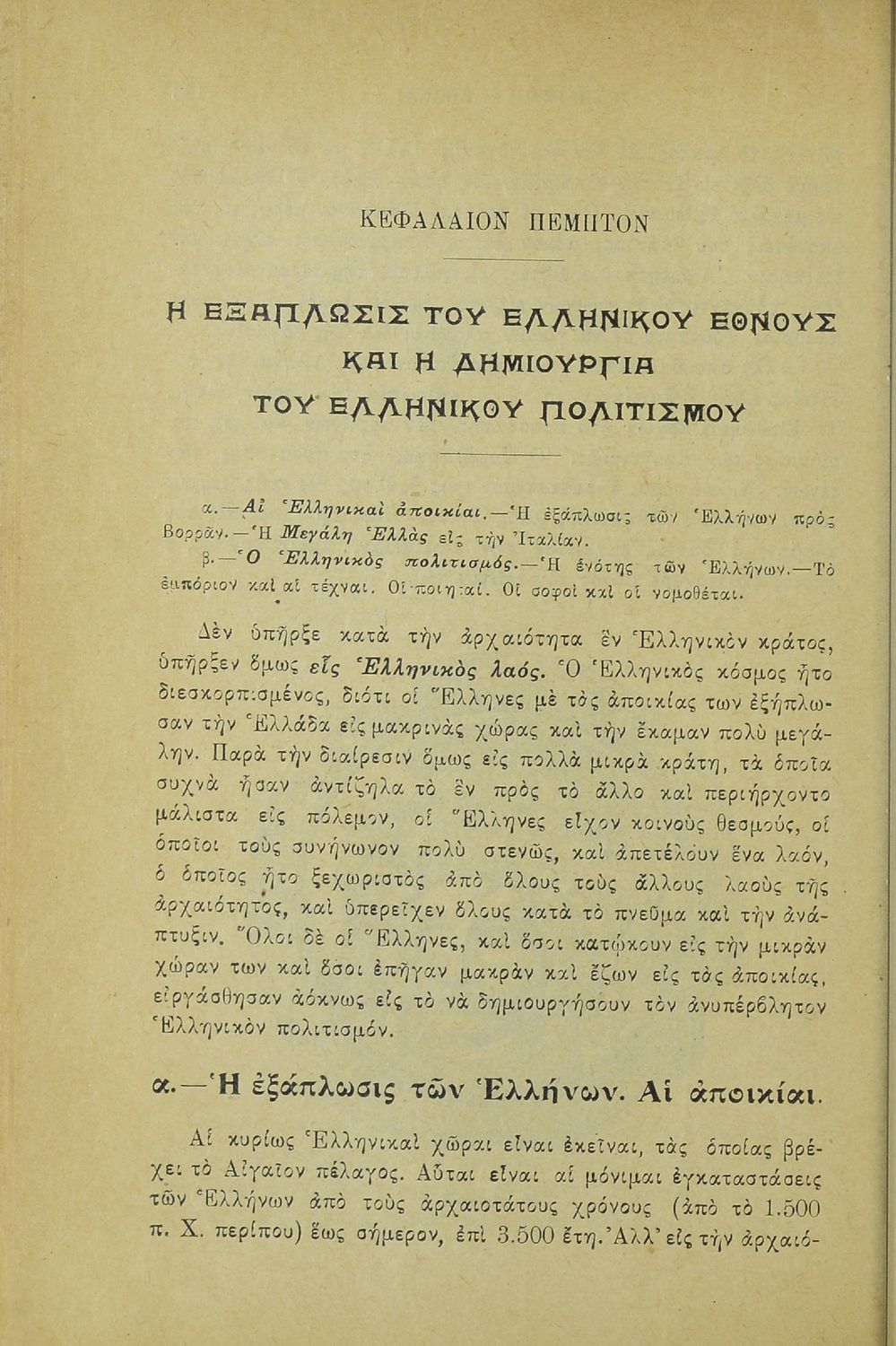 Σχολικό εγχειρίδιο Ιστορίας Α΄ Γυμνασίου που υιοθετεί το σχήμα του Παπαρρηγόπουλου και καλύπτει την περίοδο από τα προϊστορικά χρόνια μέχρι και τη Μακεδονική Ηγεμονία.