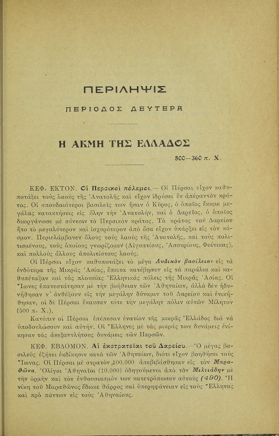 Σχολικό εγχειρίδιο Ιστορίας Α΄ Γυμνασίου που υιοθετεί το σχήμα του Παπαρρηγόπουλου και καλύπτει την περίοδο από τα προϊστορικά χρόνια μέχρι και τη Μακεδονική Ηγεμονία.