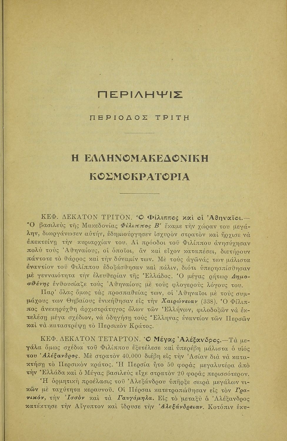 Σχολικό εγχειρίδιο Ιστορίας Α΄ Γυμνασίου που υιοθετεί το σχήμα του Παπαρρηγόπουλου και καλύπτει την περίοδο από τα προϊστορικά χρόνια μέχρι και τη Μακεδονική Ηγεμονία.