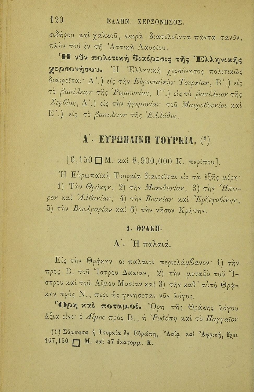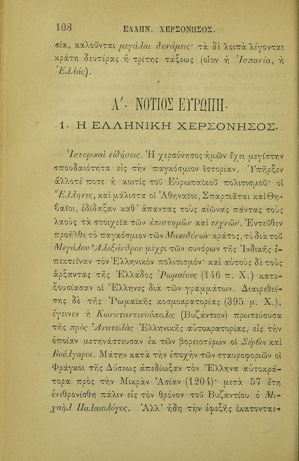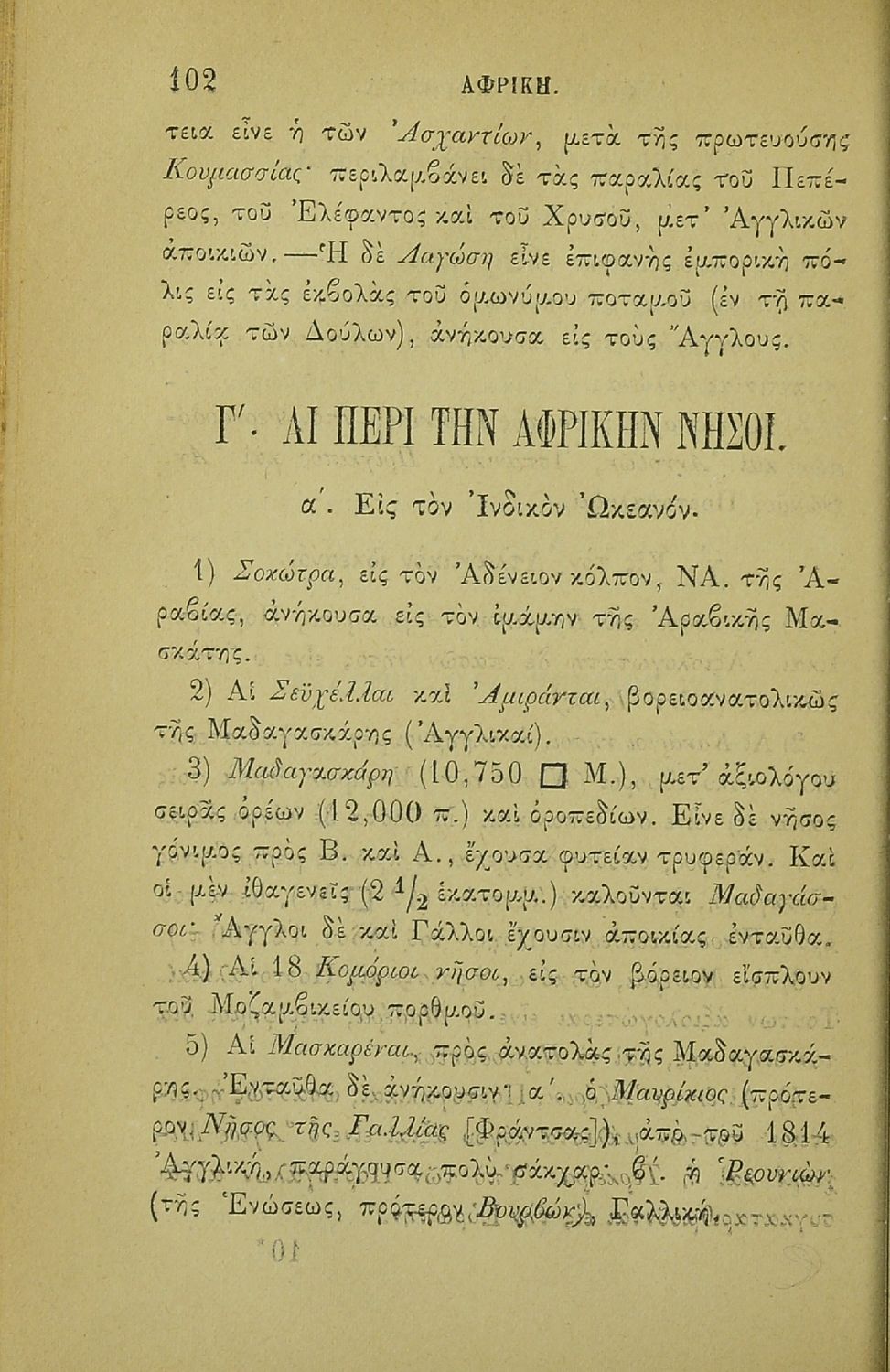Εγχειρίδιον της συγχρόνου γεωγραφίας περιλαμβάνον εκ της παλαιάς την της ελλ. και ιταλ. Χερσονήσου της Μικράς Ασίας, Ασσυρίας, Βαβυλωνίας, Μηδίας, Περσίας, Αιγύπτου και Κυρήνης μετ' αλφαβητικού πίνακος προς χρήσιν των Γυμνασίων