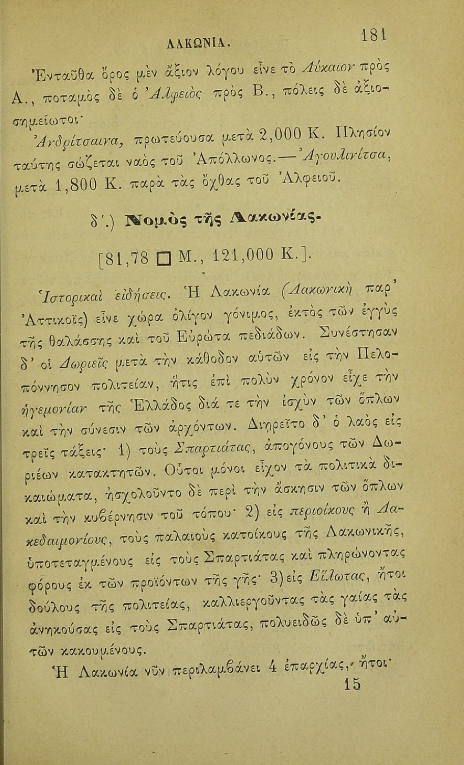 Τίτλος: Εγχειρίδιον της συγχρόνου γεωγραφίας περιλαμβάνον εκ της παλαιάς την της ελλ. και ιταλ. Χερσονήσου της Μικράς Ασίας, Ασσυρίας, Βαβυλωνίας, Μηδίας, Περσίας, Αιγύπτου και Κυρήνης μετ' αλφαβητικού πίνακος προς χρήσιν των Γυμνασίων